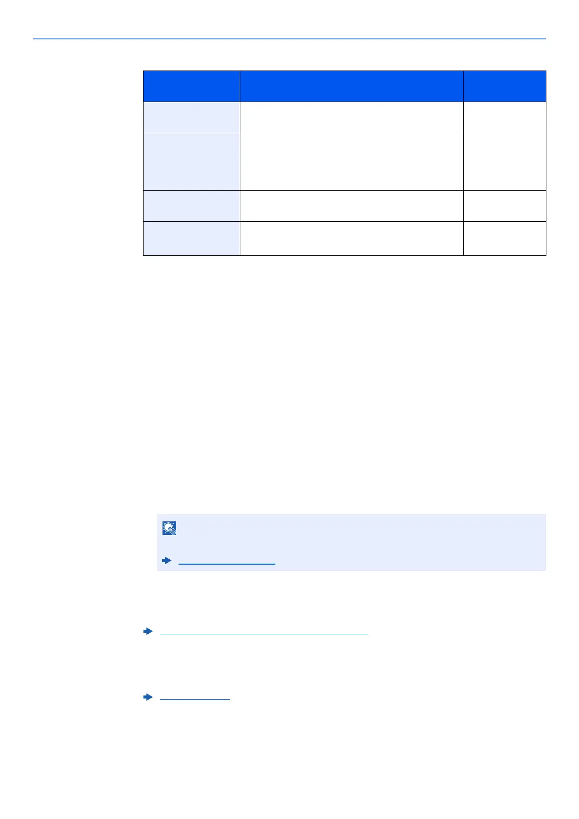 The table below lists the items to be set.
