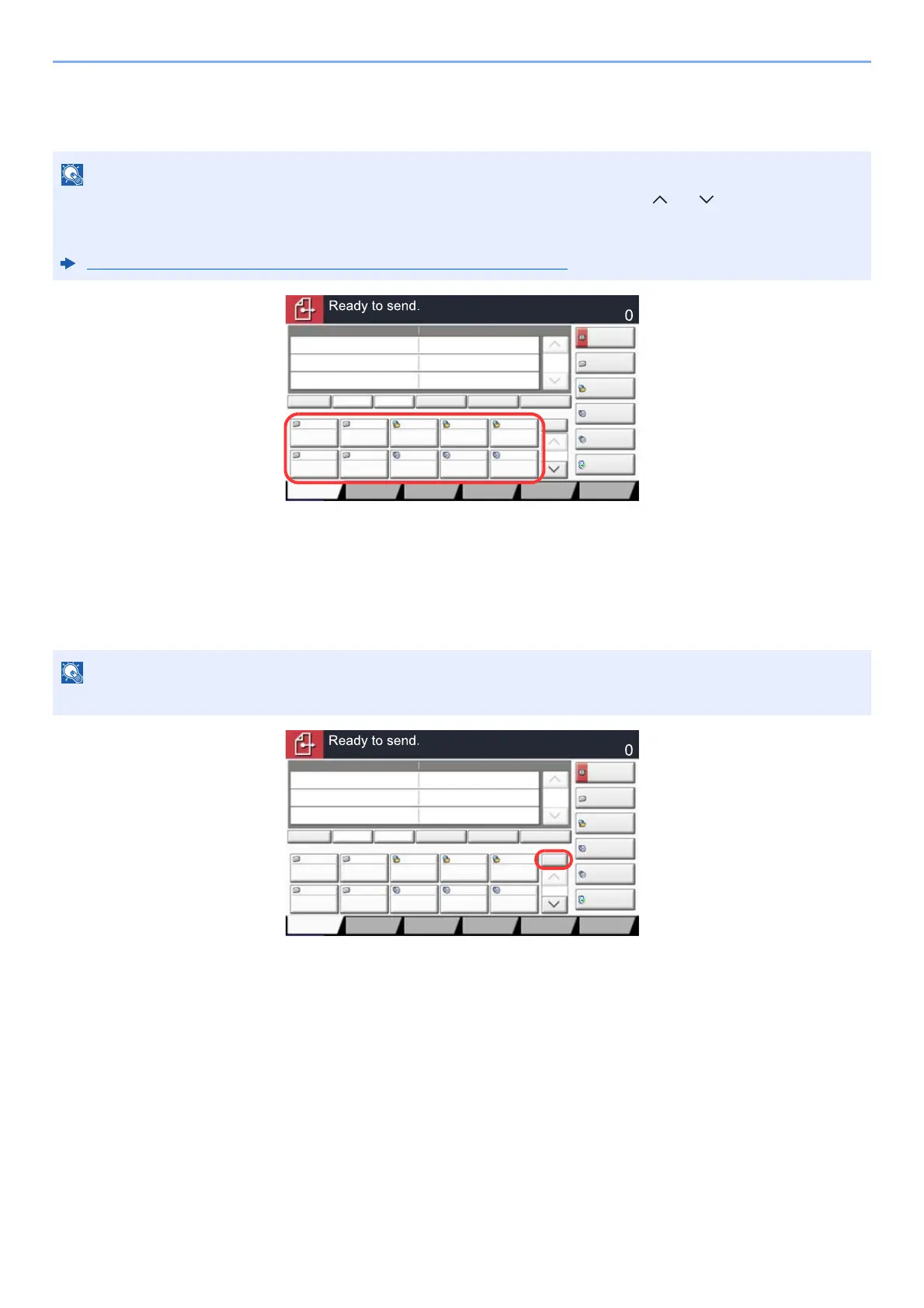 If the One Touch Keys for the desired destination is hidden on the touch panel, select [ ] or [ ] to scroll and view