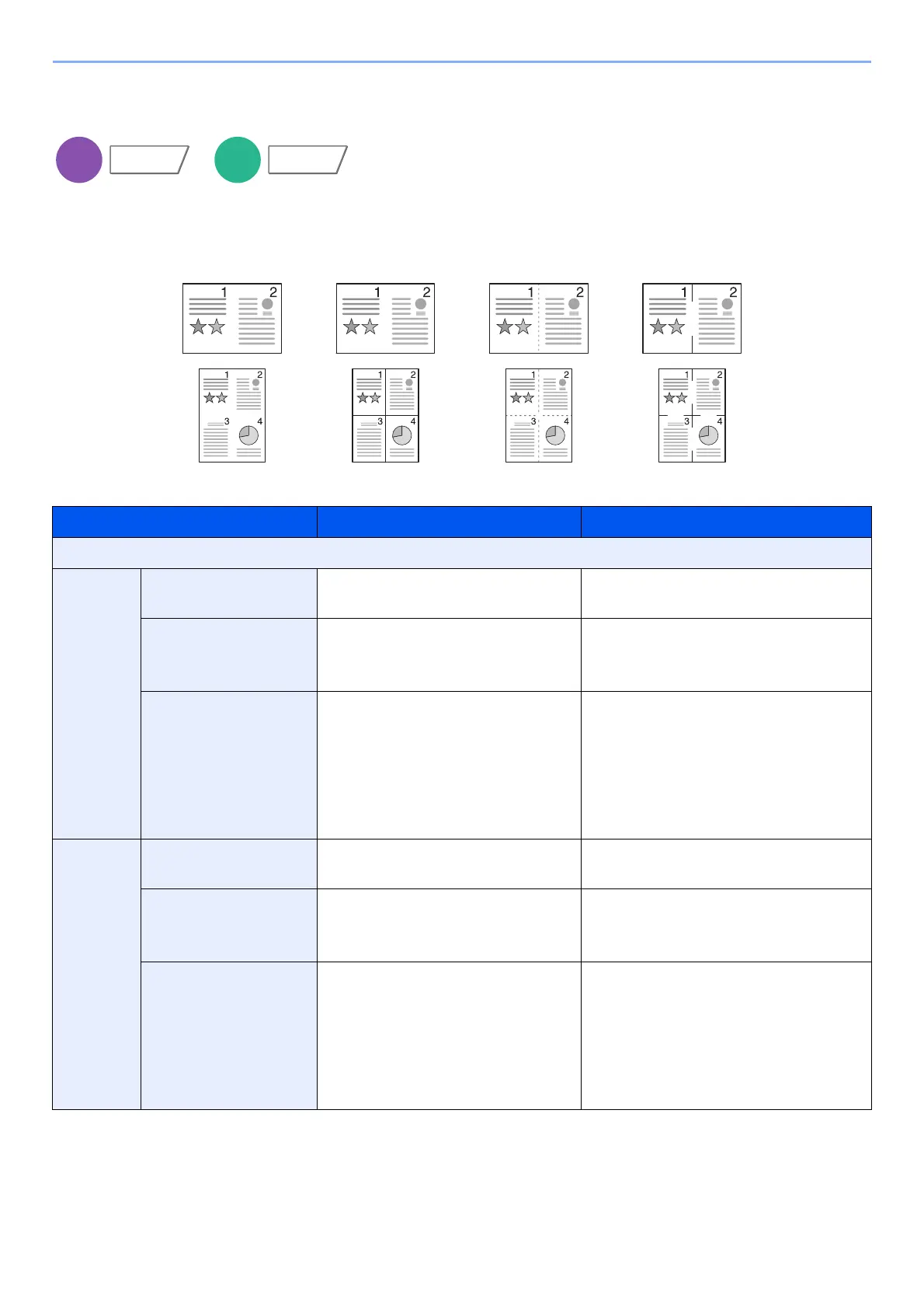 Combines 2 or 4 original sheets into 1 printed page.