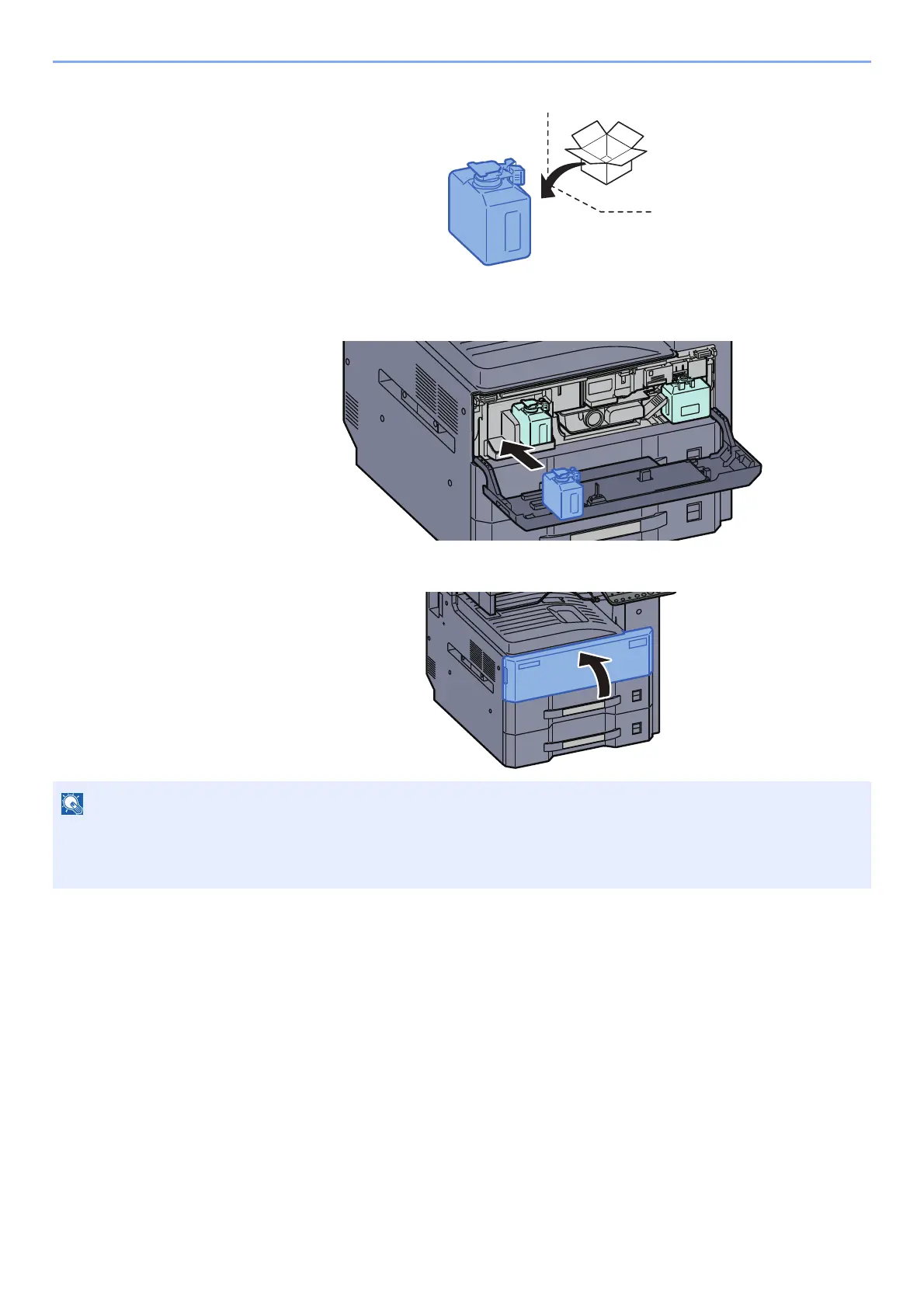 Place the Waste Toner Box in the spare waste toner box tray