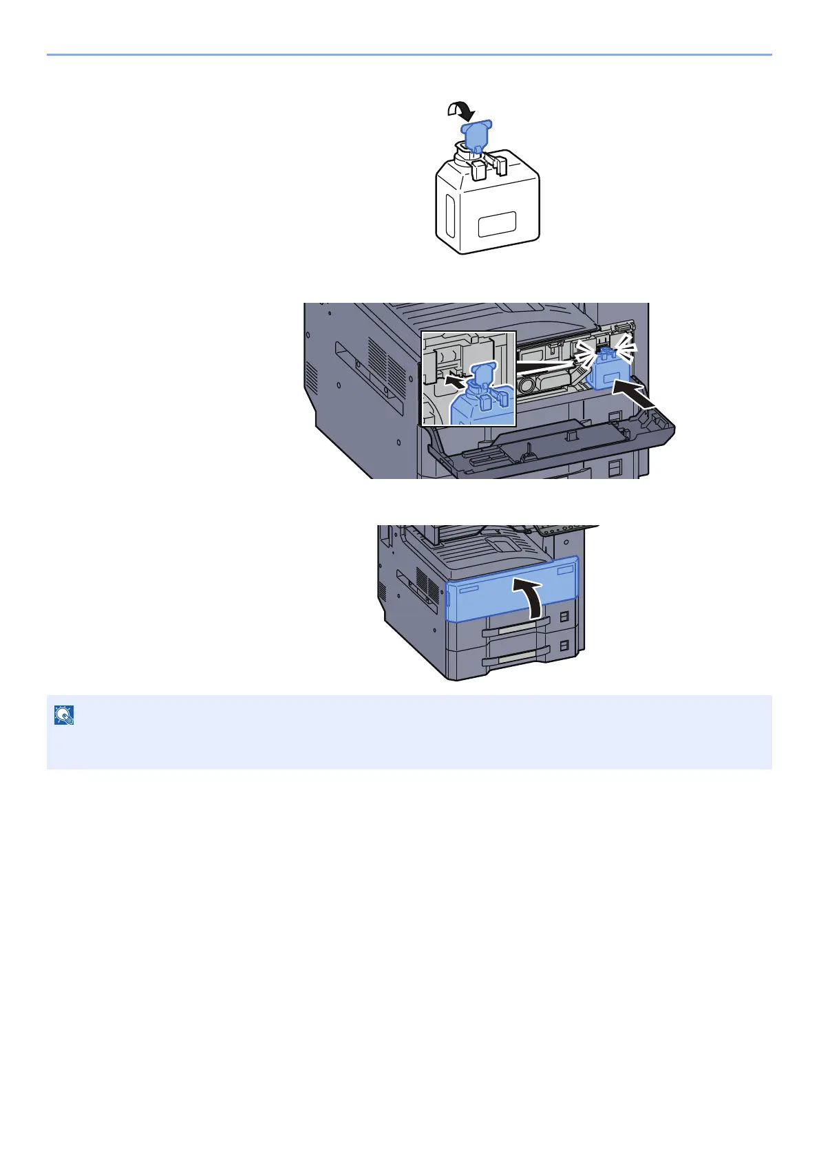 Return the exhausted waste toner box to your dealer or service representative. The collected waste toner box will be