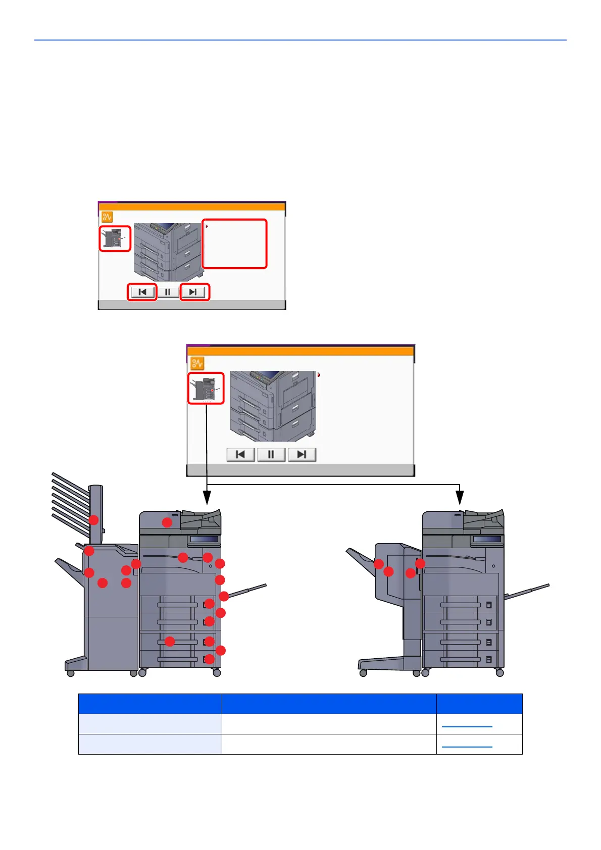 If a paper jam occurs, the location of the jam will be displayed on the touch panel as well as the clearing instructions.