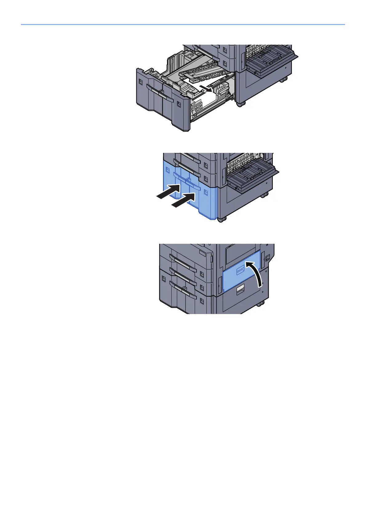 Push paper feed unit, Cassette 3 and Cassette 4 back in.