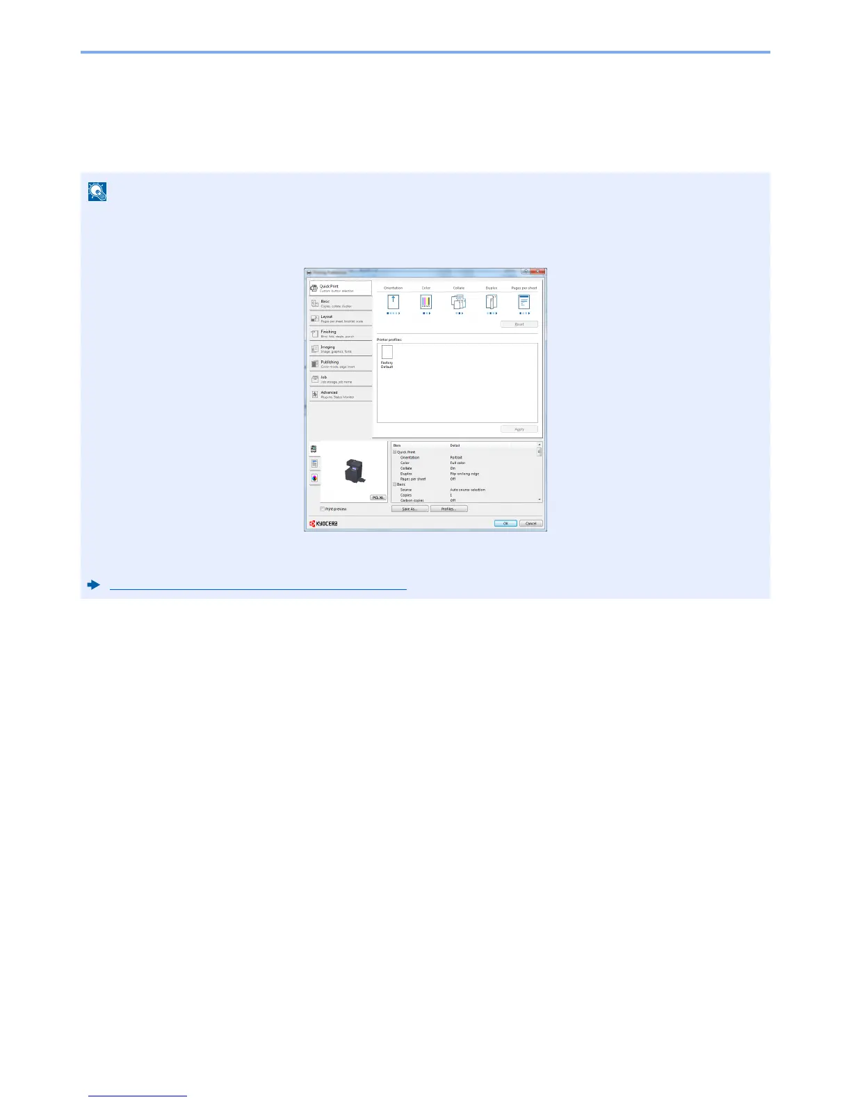 • In some environments, the current settings are displayed at the bottom of the printer driver.