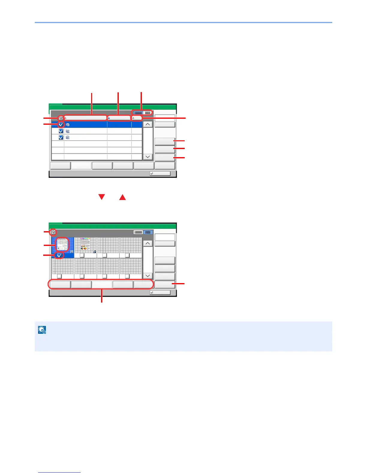 The document list is a list of the documents stored in the custom box. Documents can be listed either by name or as