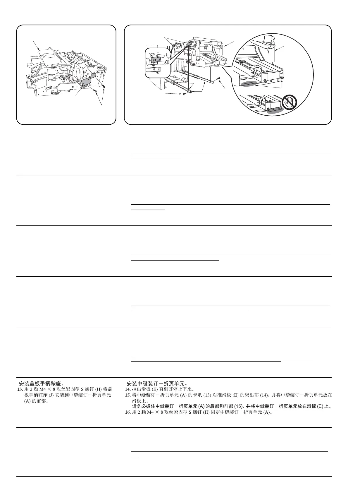 15.Align pawl (13) of center-folding unit (A) with projection (14) of slider (E) and place the center-