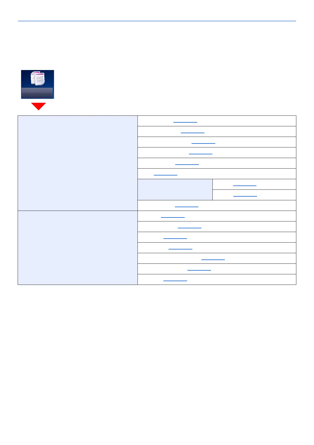 This is a list of menus displayed on the touch panel. Depending on the settings, some menus may not be displayed.