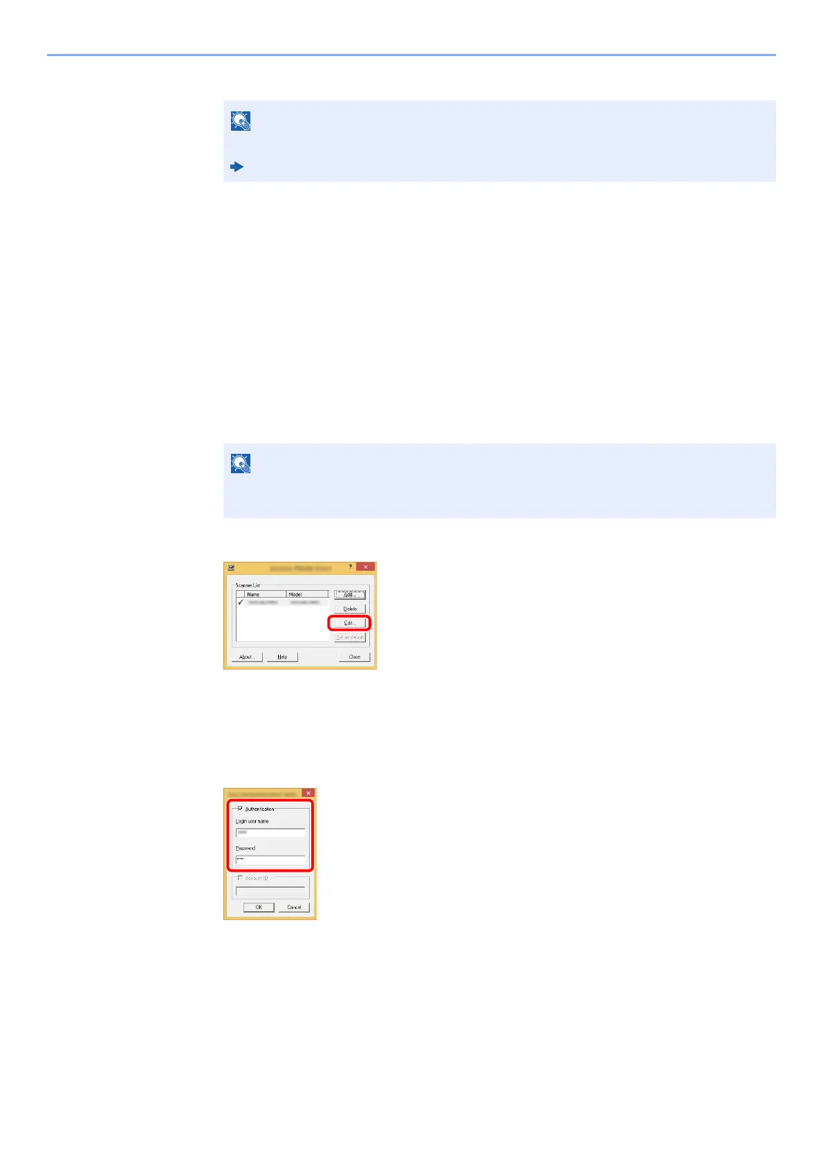 To manage the users that scan using TWAIN, the following settings are necessary in the TWAIN driver. Instructions are