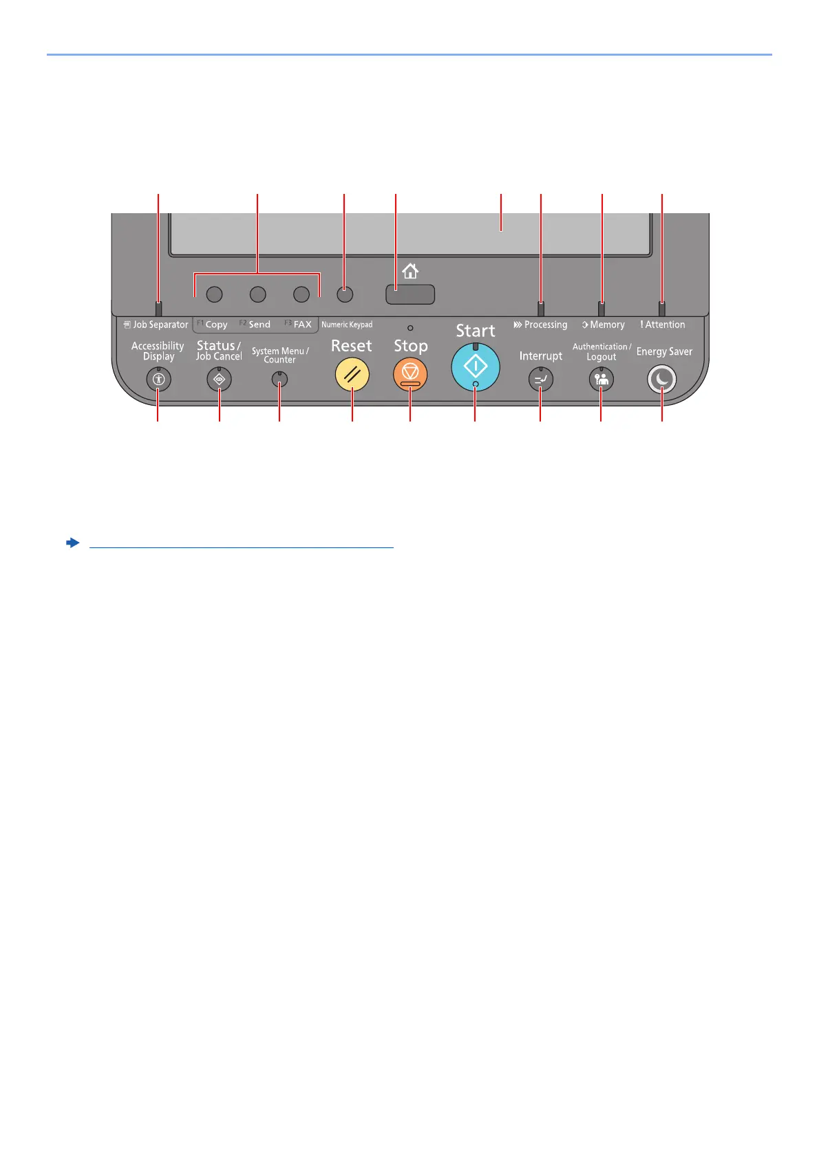14 [Attention] indicator: Lights or blinks when an error occurs and a job is stopped.