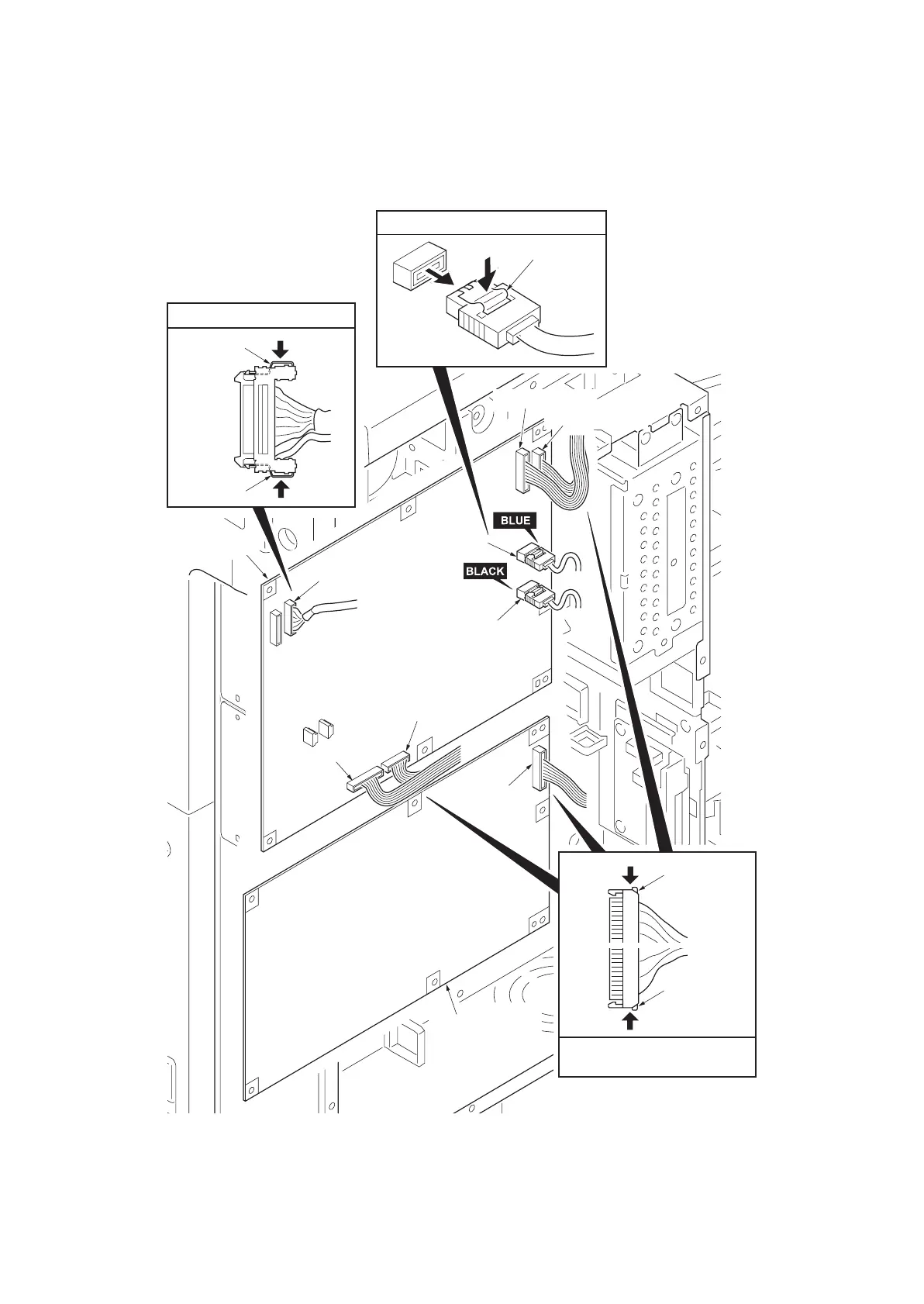 When connecting the hard disk cables (YC1, YC2) to the PWB, match "BLACK" and "BLUE" marked on the PWB with the