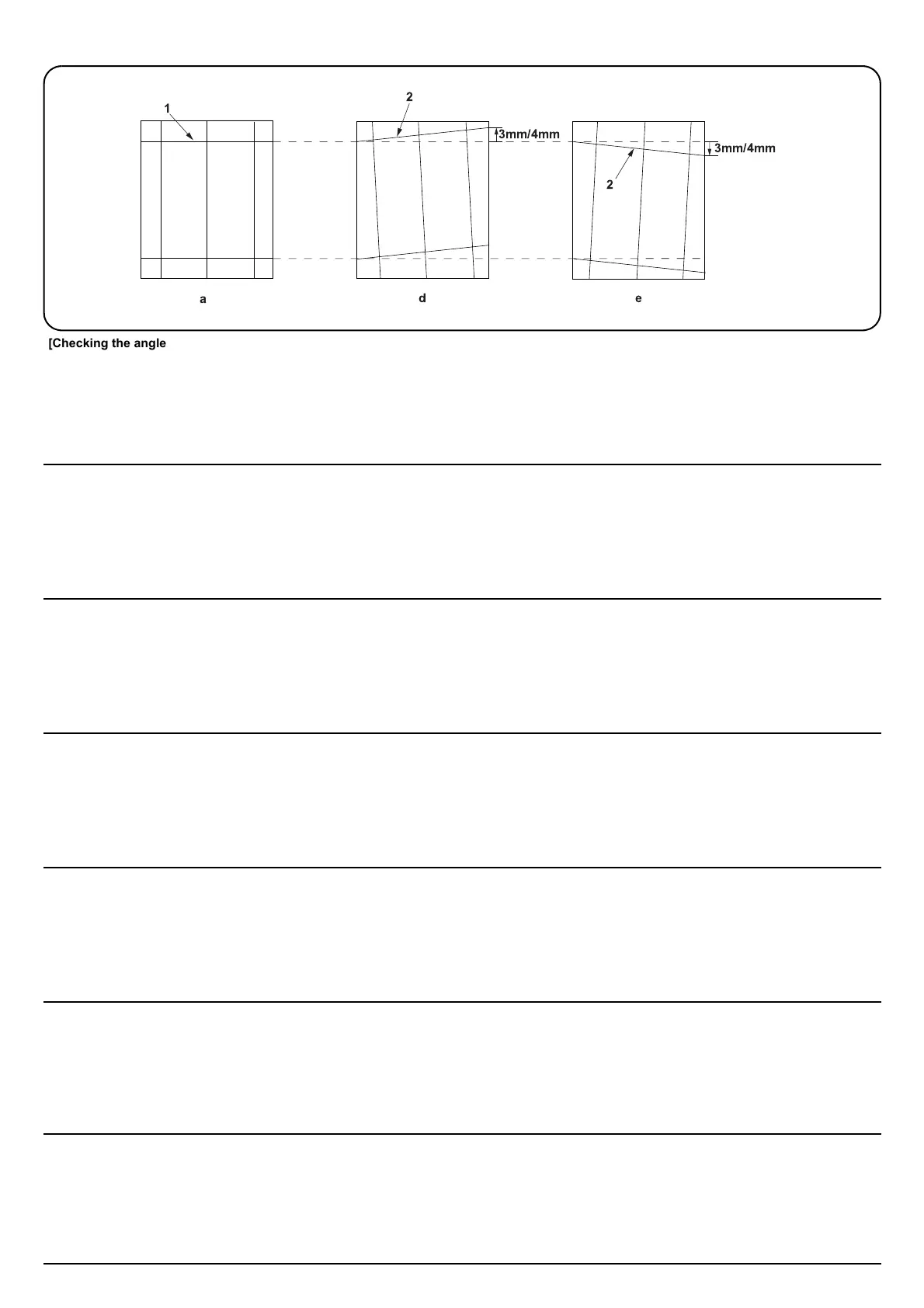 1. Check the horizontal gap between line (1) of original (a) and line (2) of copy example positions. If the gap exceeds the reference value, adjust the