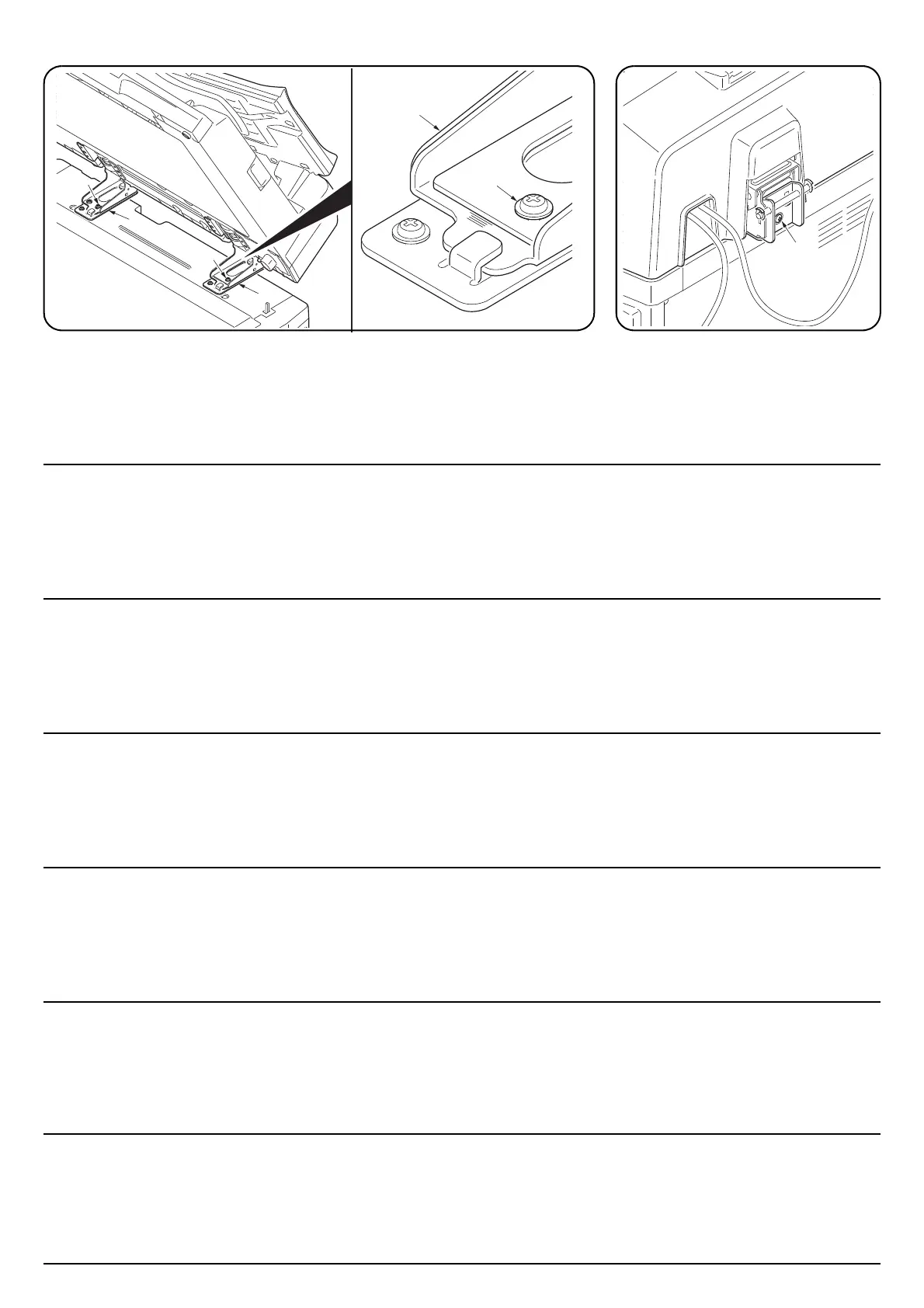 2. 左右の固定金具 (C) のビス M4 × 14TP (F) 2本を緩める。