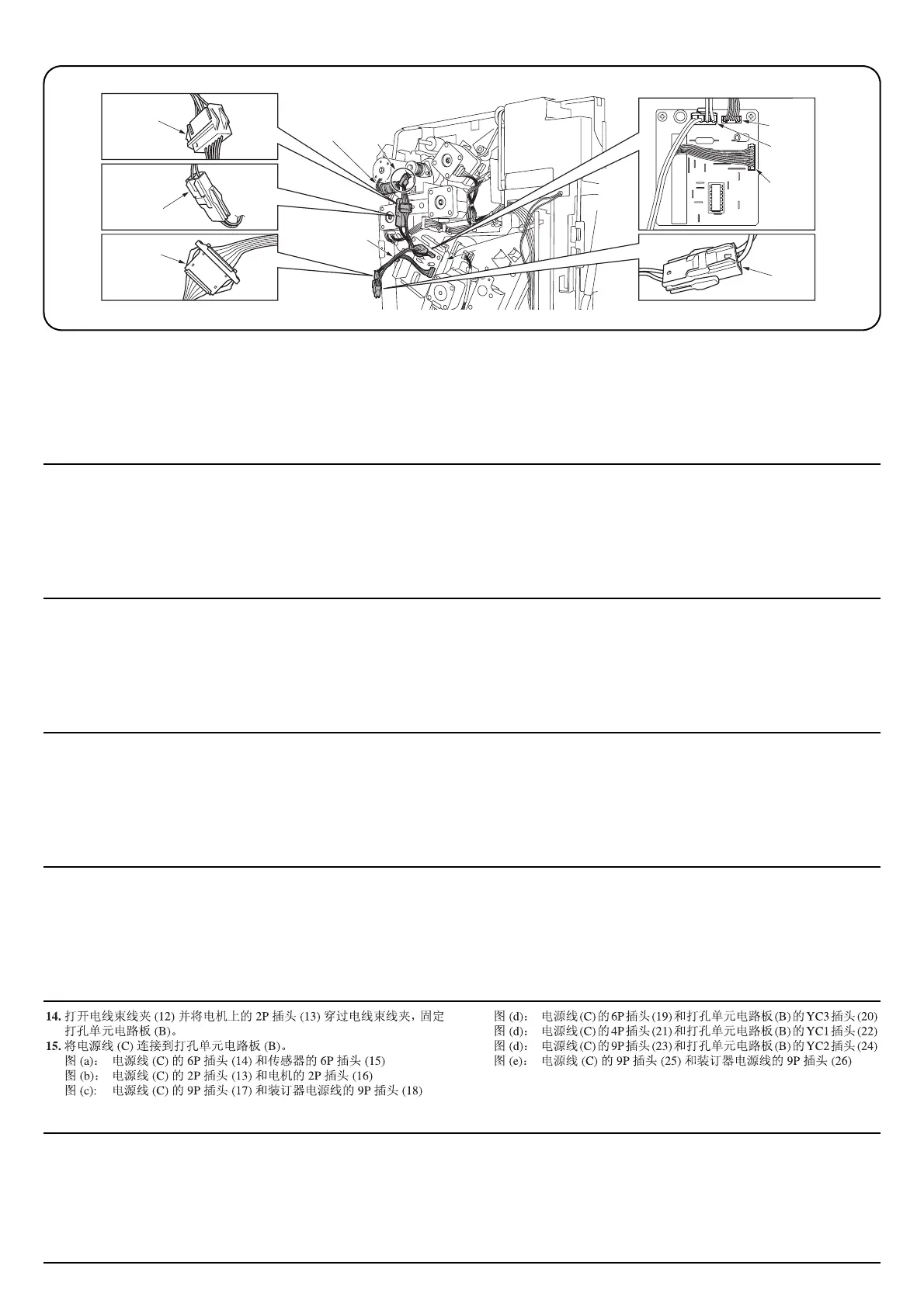 15.Connect the power cord (C) to the punch PCB (B).