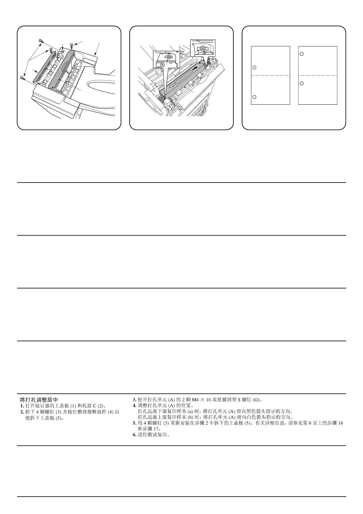 パンチ穴が下にずれている場合 コピーサンプル (a):パンチユニット (A) を黒矢印の方向へずらす。