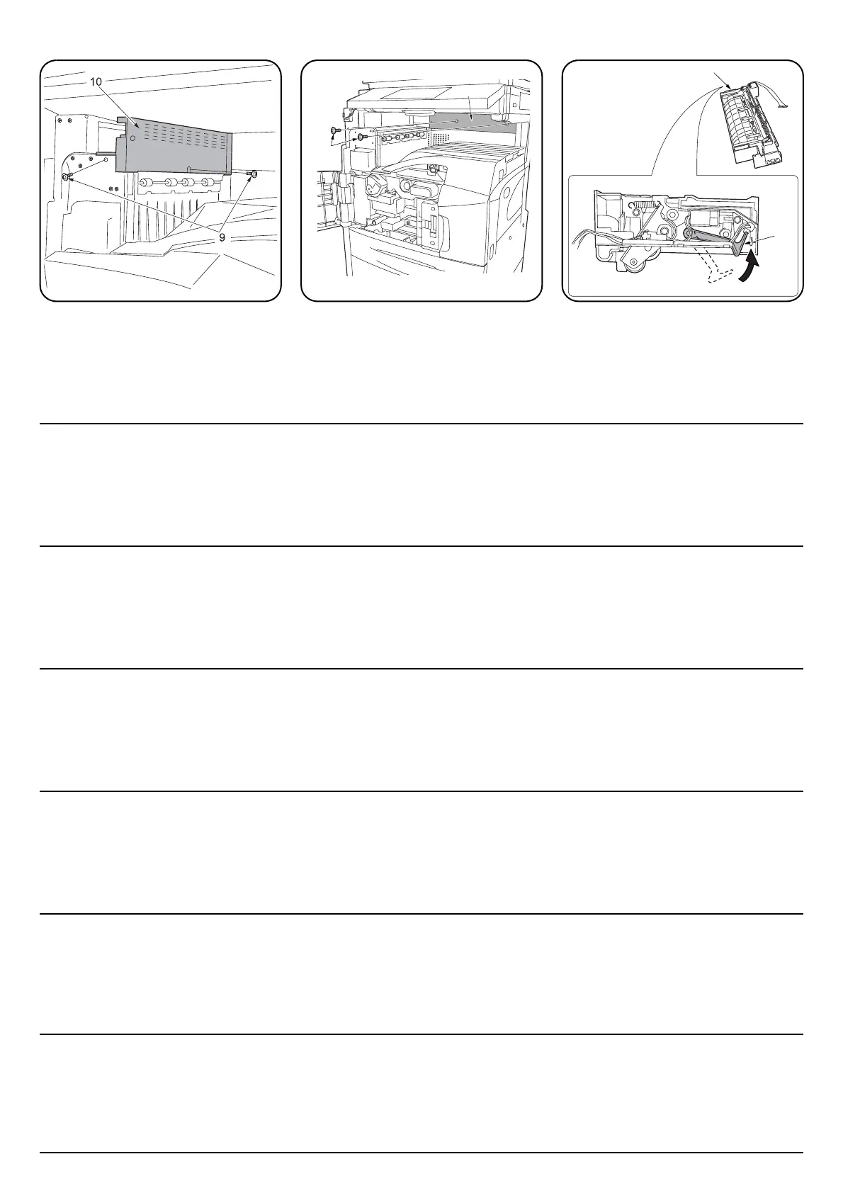 5. 卸下 2 个螺丝(9),然后将出纸盖板(10)的