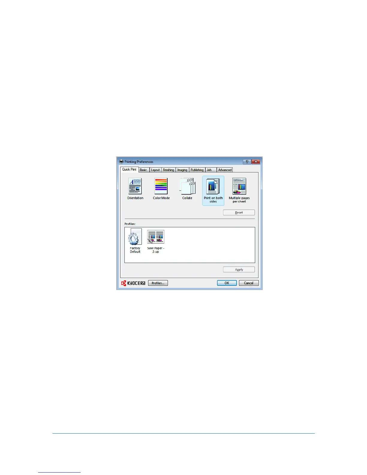 This chapter can be used as a separate Quick Print user guide when KX Driver