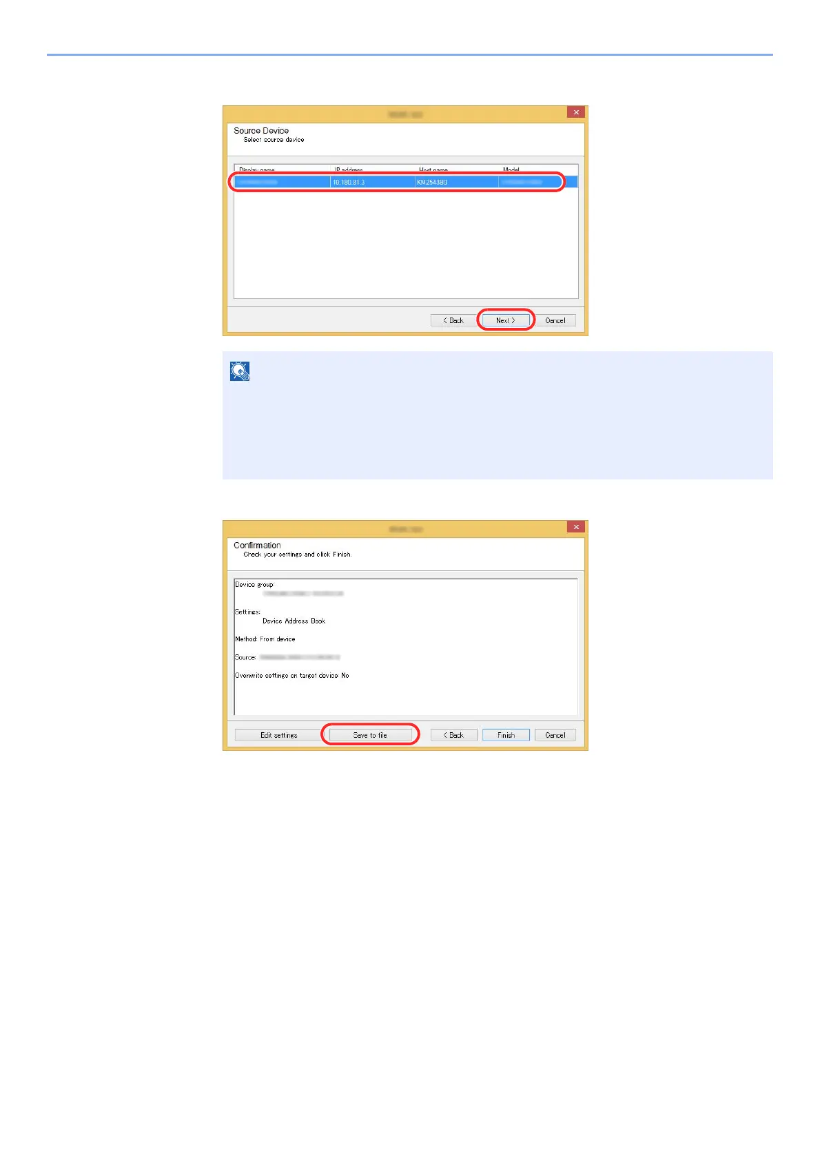 6 Select the model you want to back up, and click [Next].