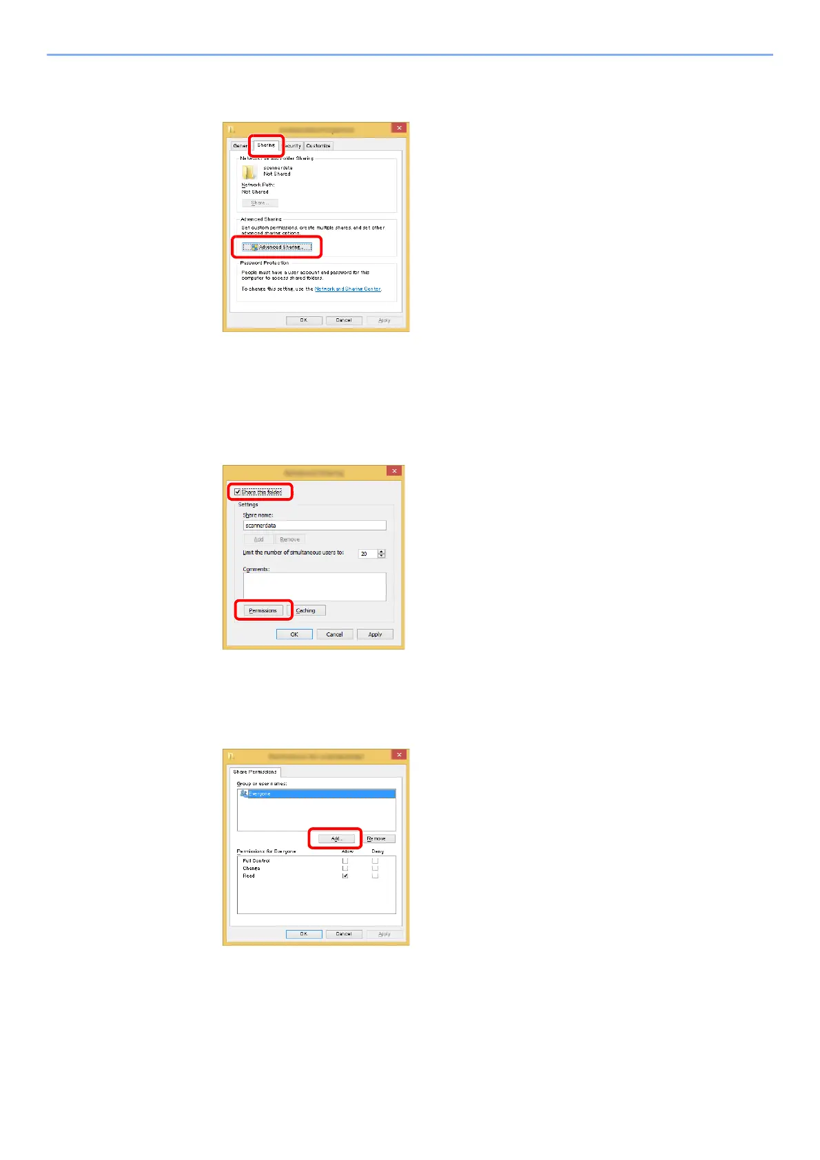 2 Right-click the "scannerdata" folder, select [Property], and click [Sharing] and
