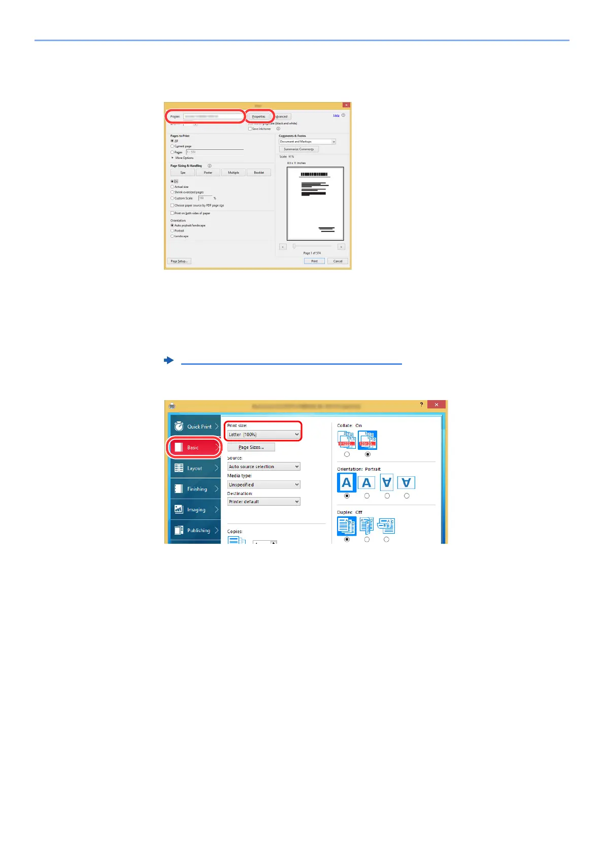 To print on the special paper such as thick paper or transparency, click "Media type" menu