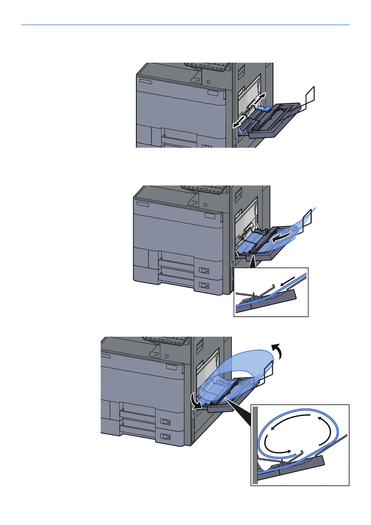 1 Open the paper width guides on the multi purpose tray to the maximum width.