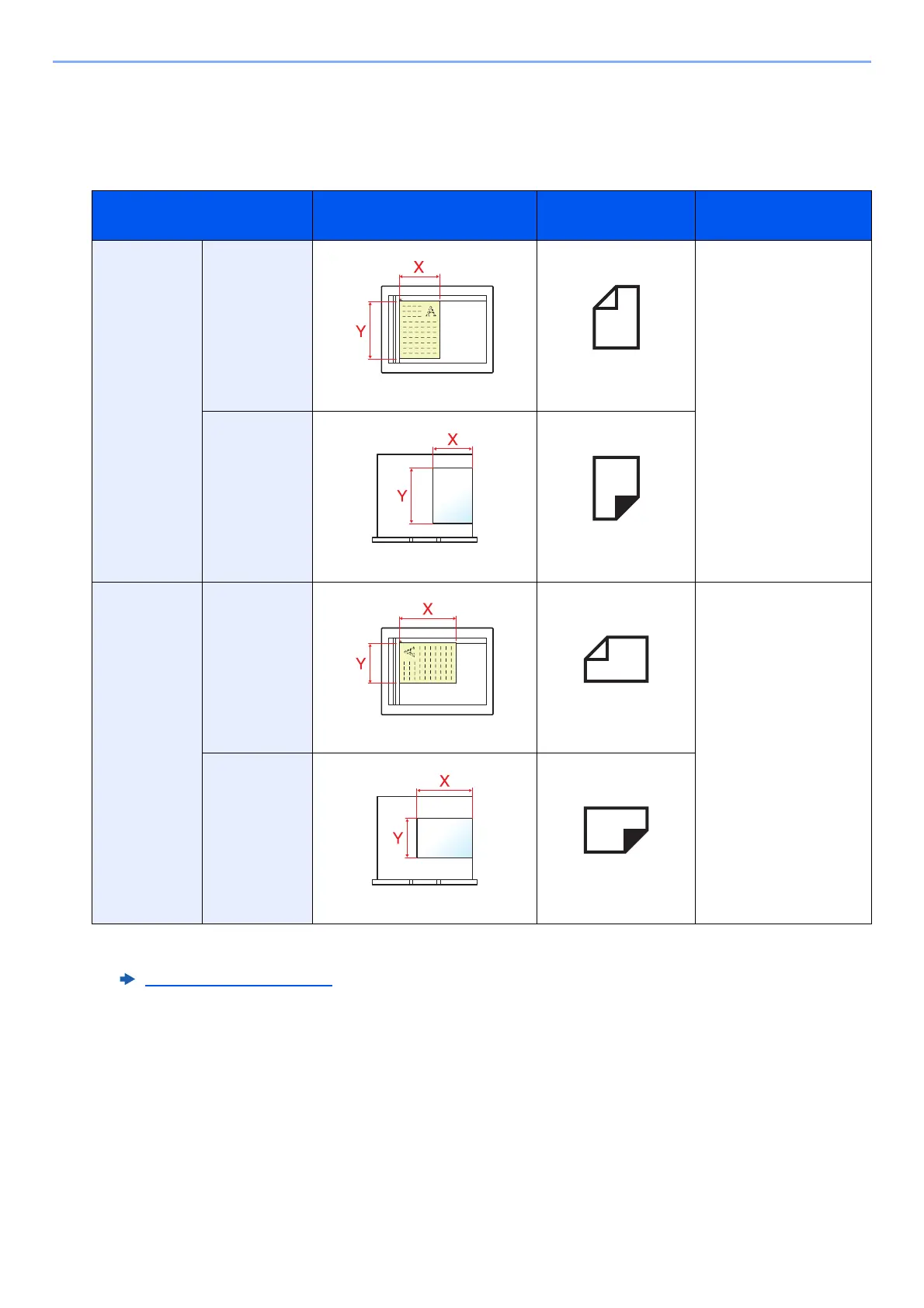 addition, the following icons are used to indicate original and paper placement orientations on the touch panel.