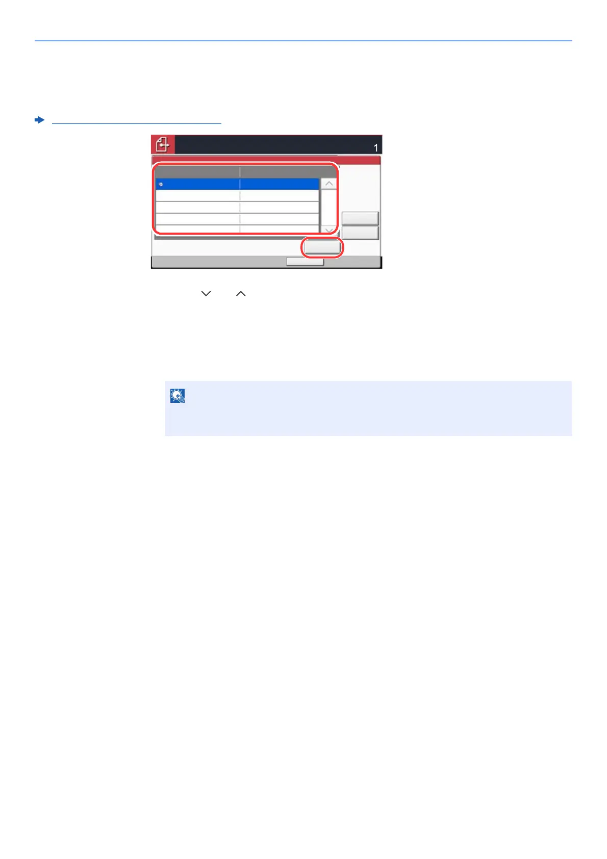 1 Select [ ] or [ ] to confirm all destination.