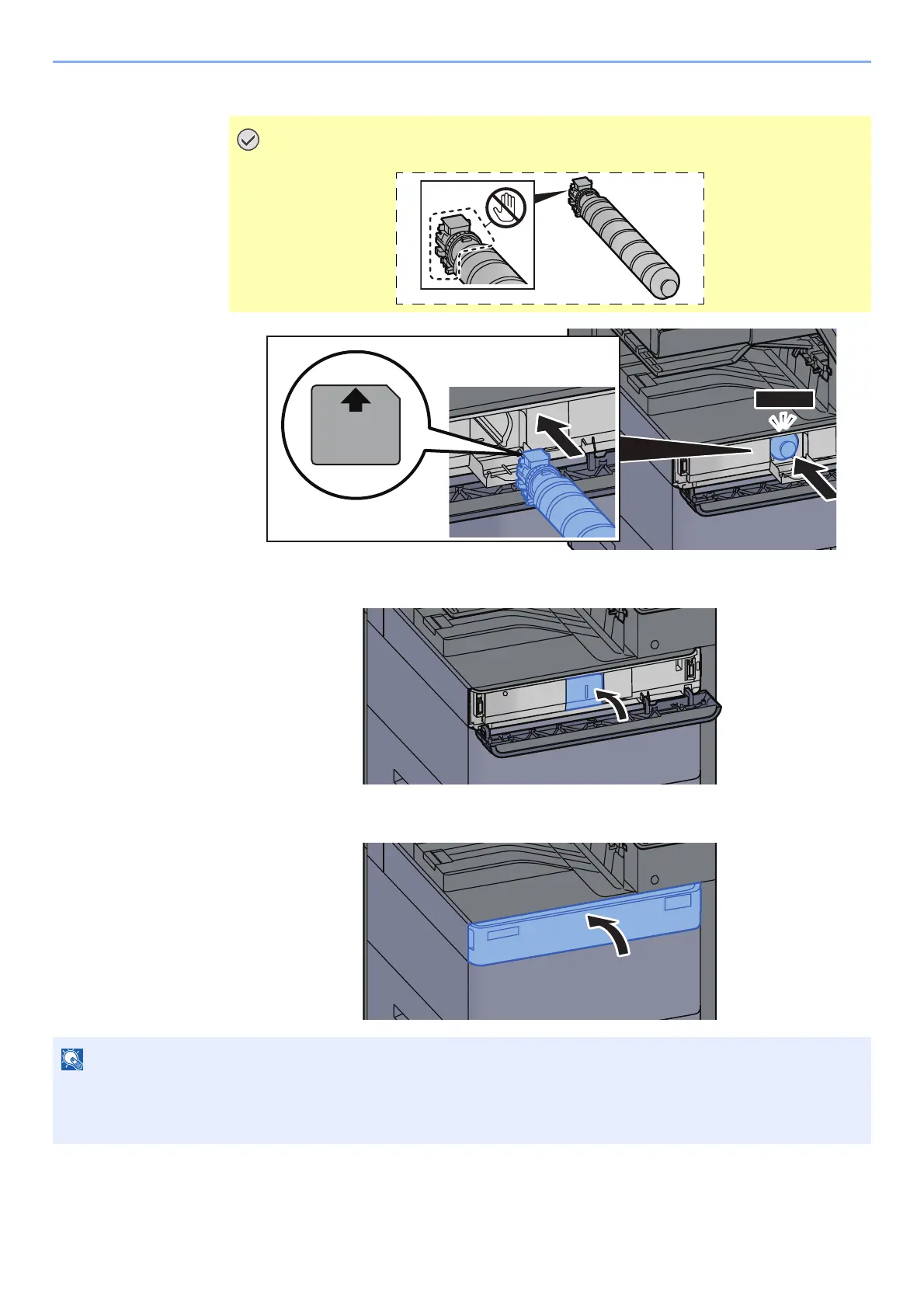 • If the toner container cover or front cover does not close, check that the new toner container is installed correctly.