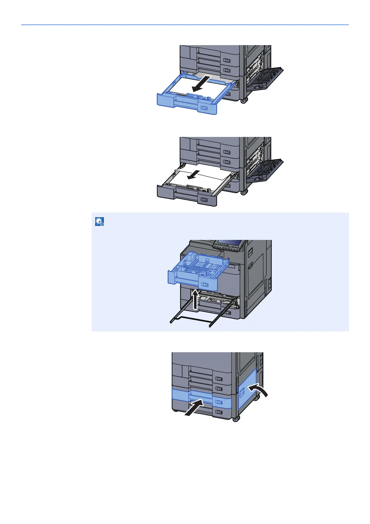 To remove paper which is difficult to get access to, the cassette can be removed.