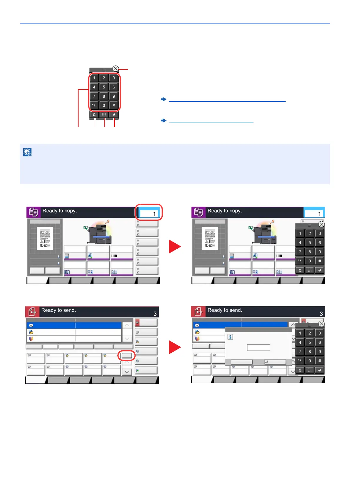 • Numeric keys do not appear on the touch panel if an optional numeric keypad is installed.