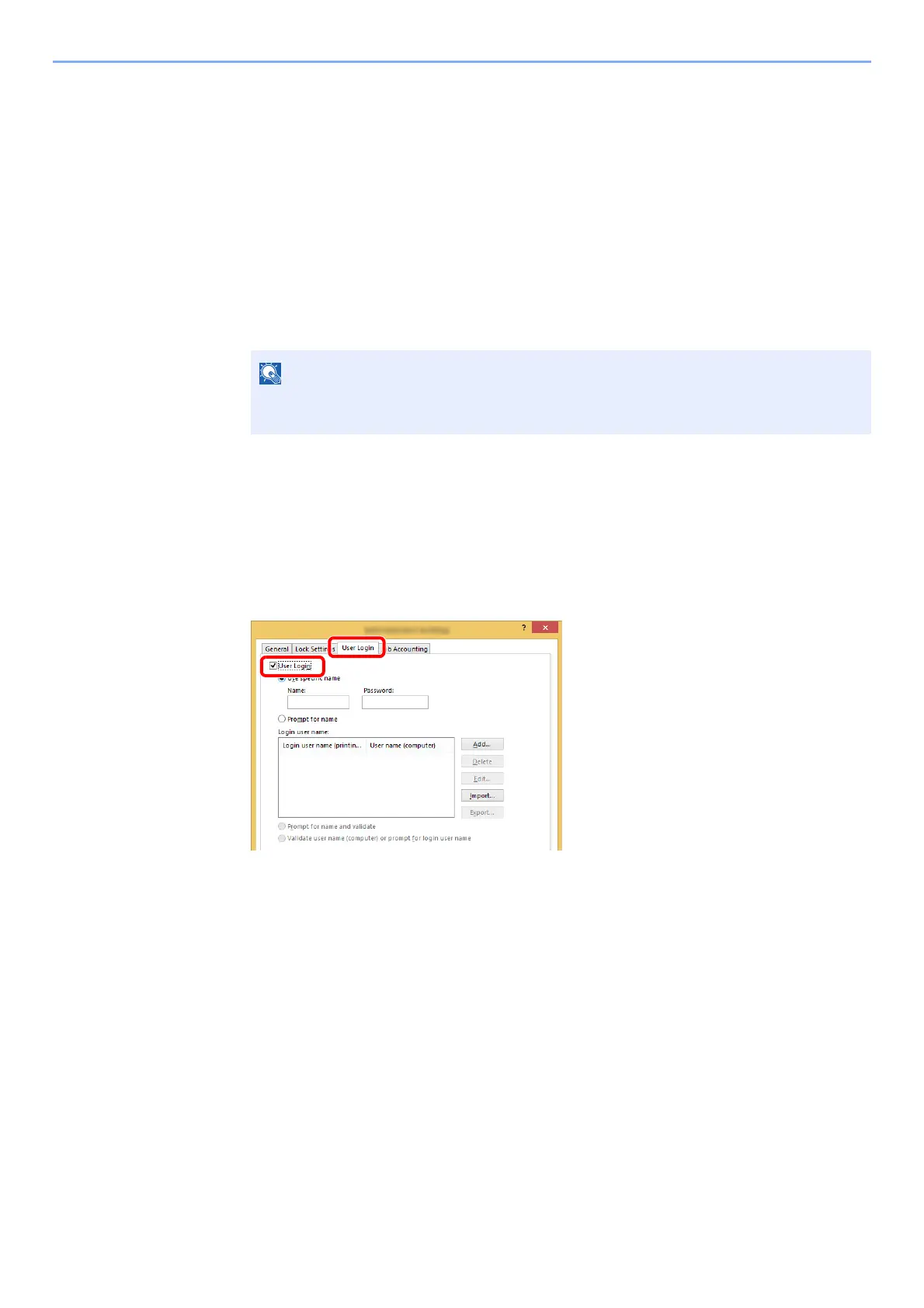 1 Select [User Login] on the [User Login] tab.