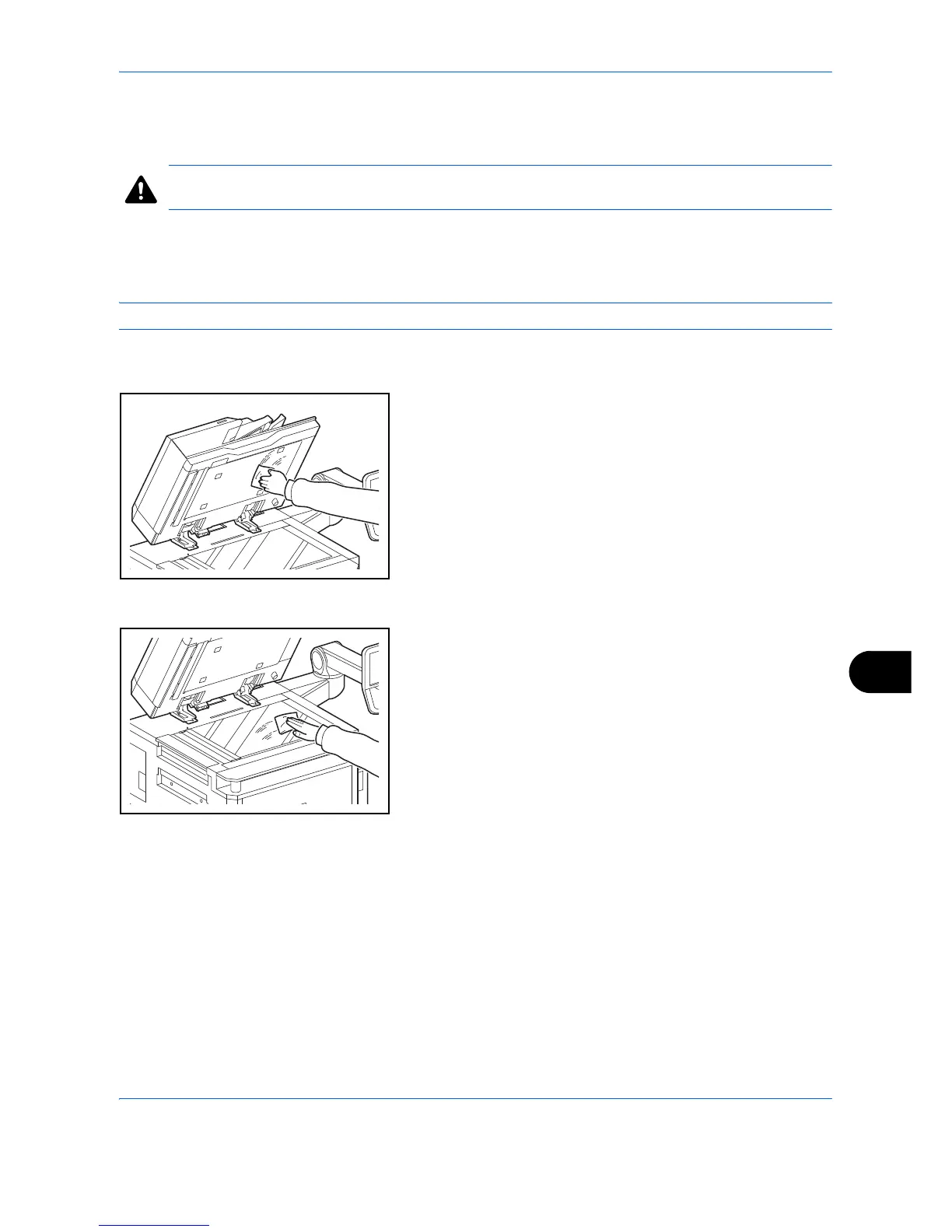 Wipe the backside of the platen cover, the inside of the document processor and the glass platen with a soft