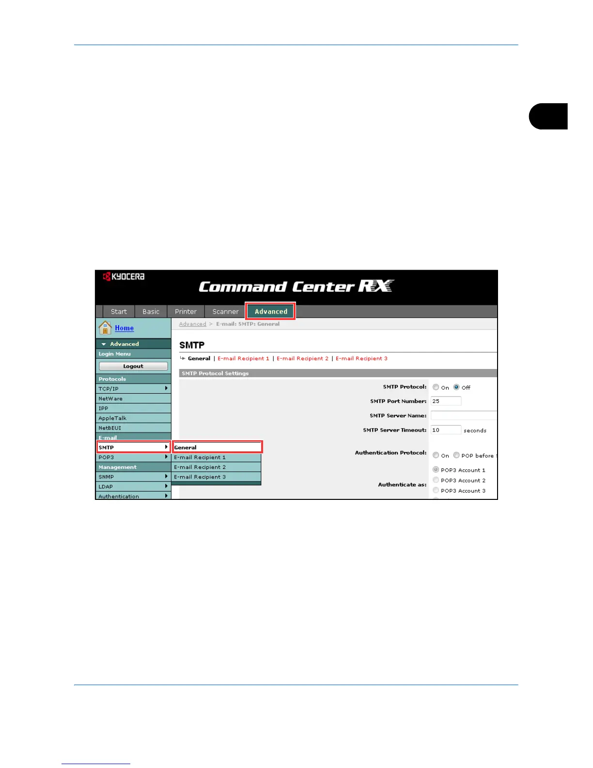 Use Command Center RX to register the IP address or host name of the SMTP server.
