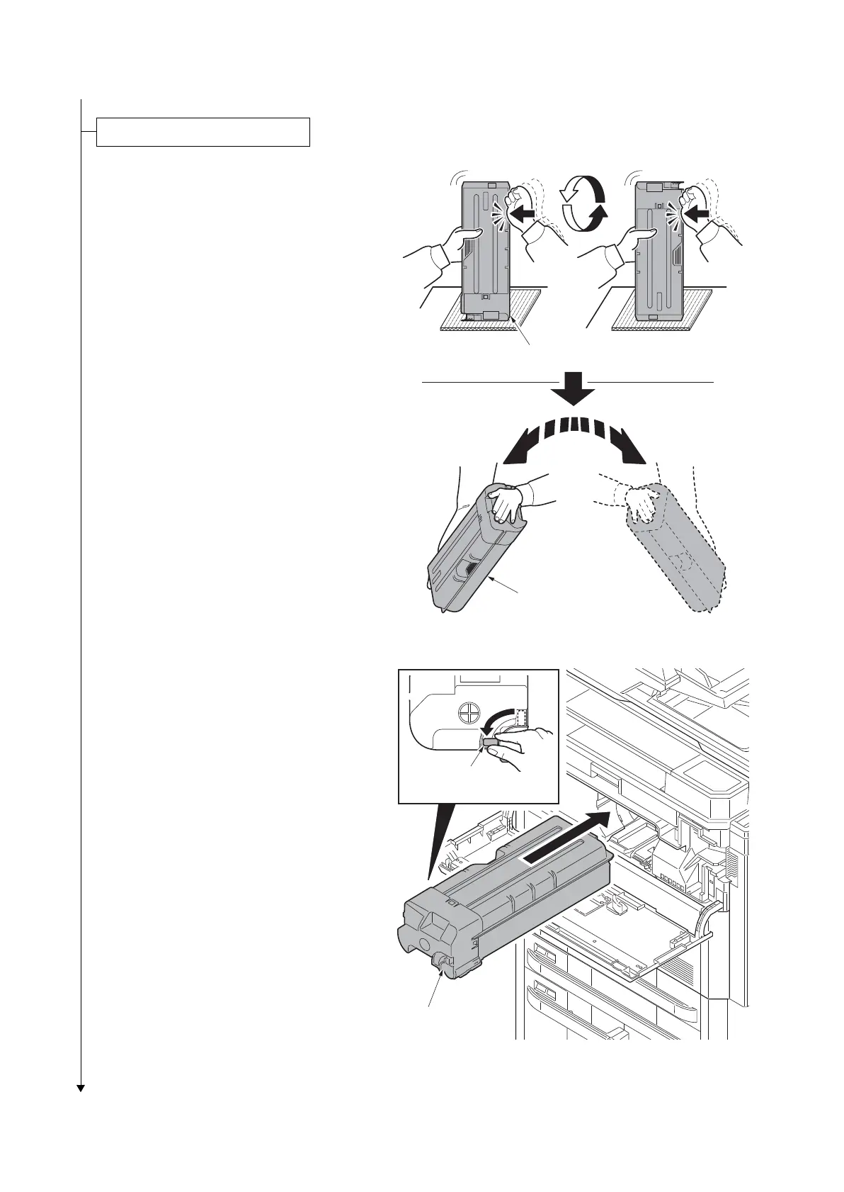 3. Shake the toner container in a wide ver-