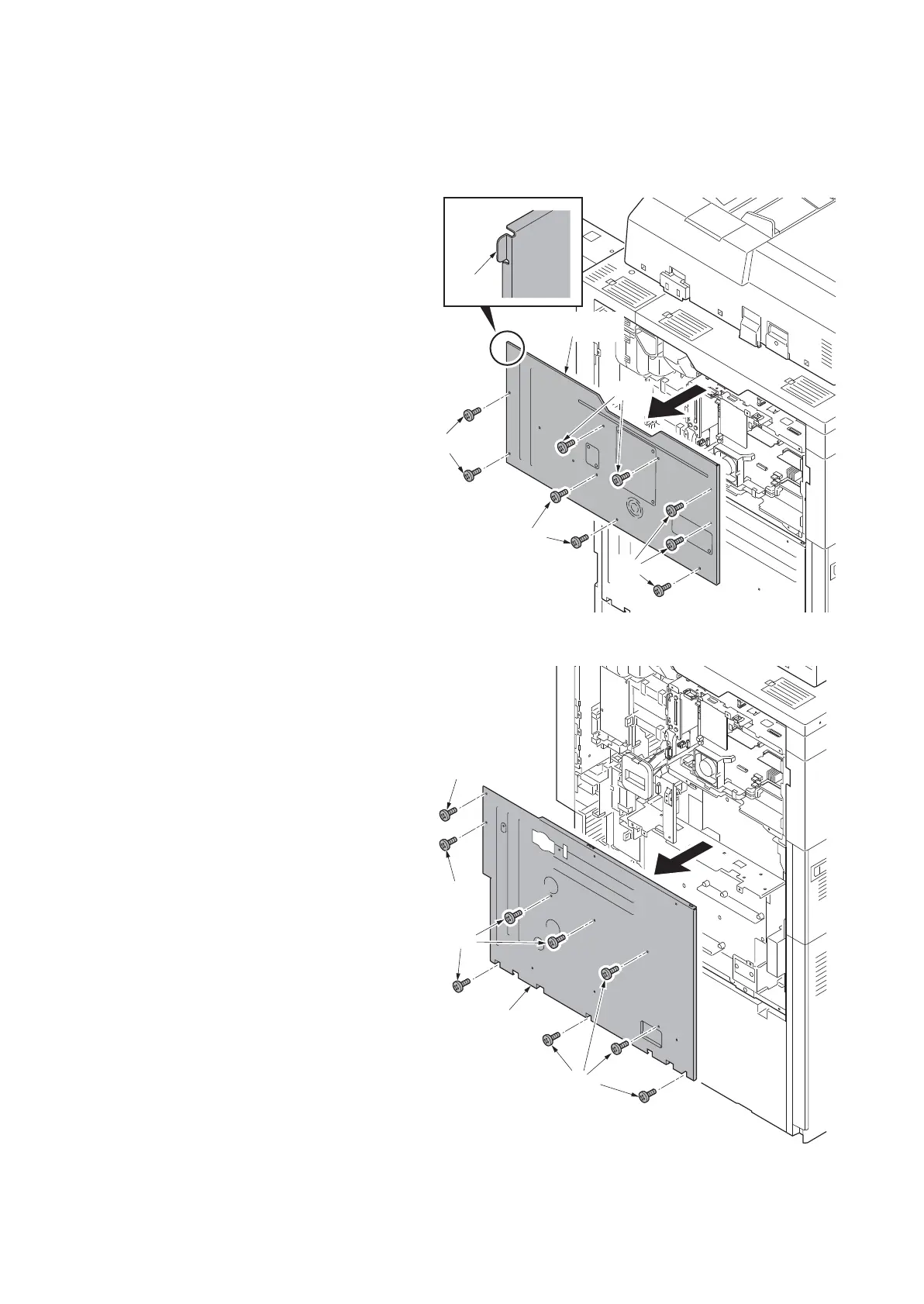 1. Remove nine screws and then remove