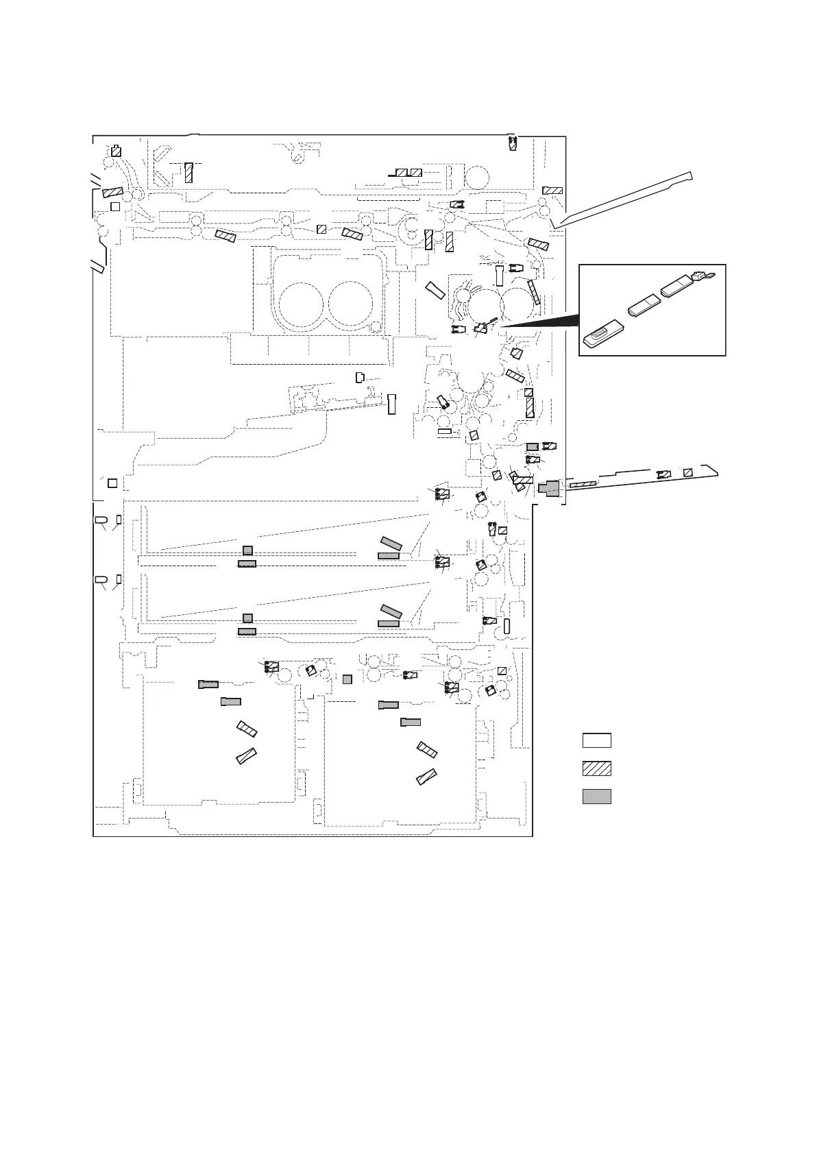 6. Lift sensor 2 (LS2)................................. Detects activation of upper limit of the bottom plate (cassette 2).