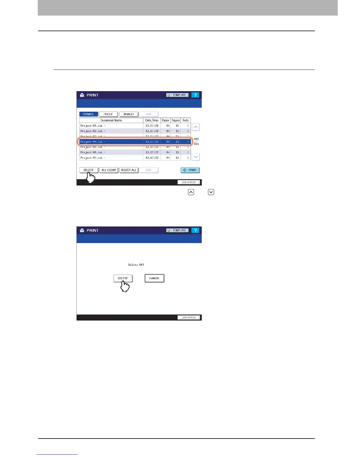 On the Private Print job list (& P.149), select the job that you want to delete, and then