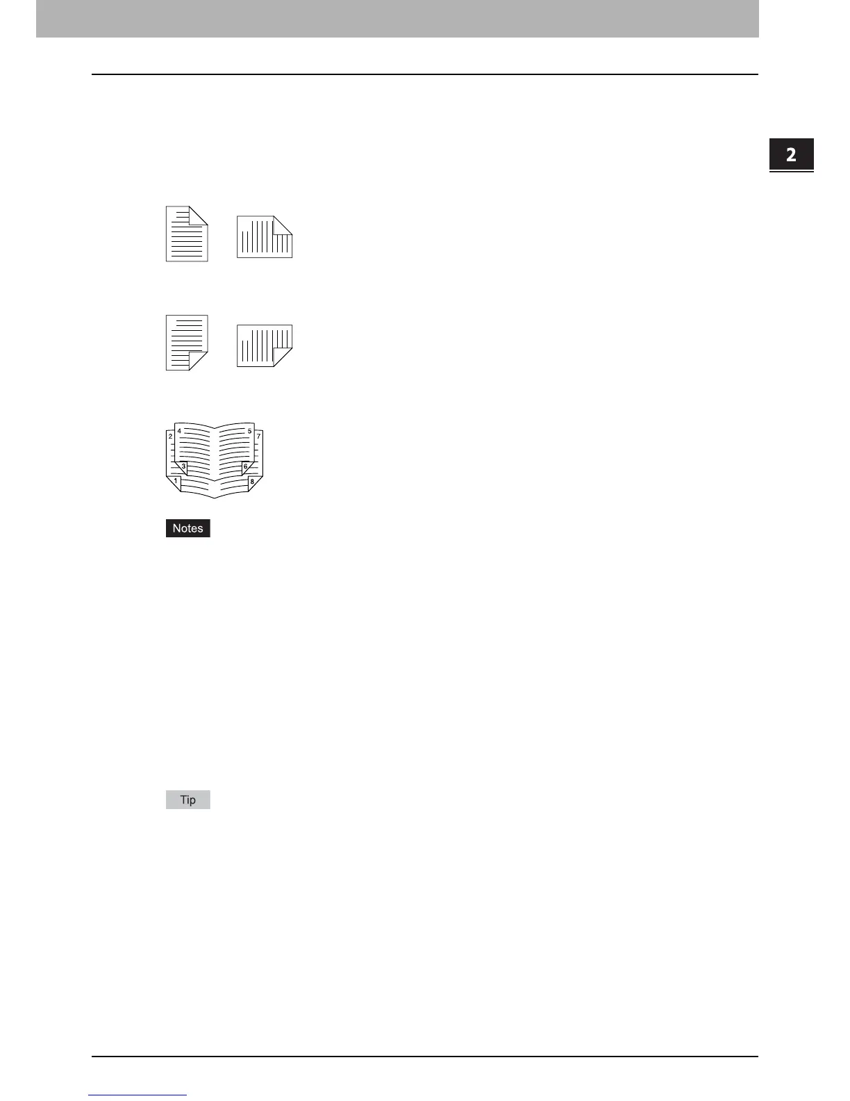 For the detailed instructions on how to print with the [2-Sided printing] setting, see the following page: