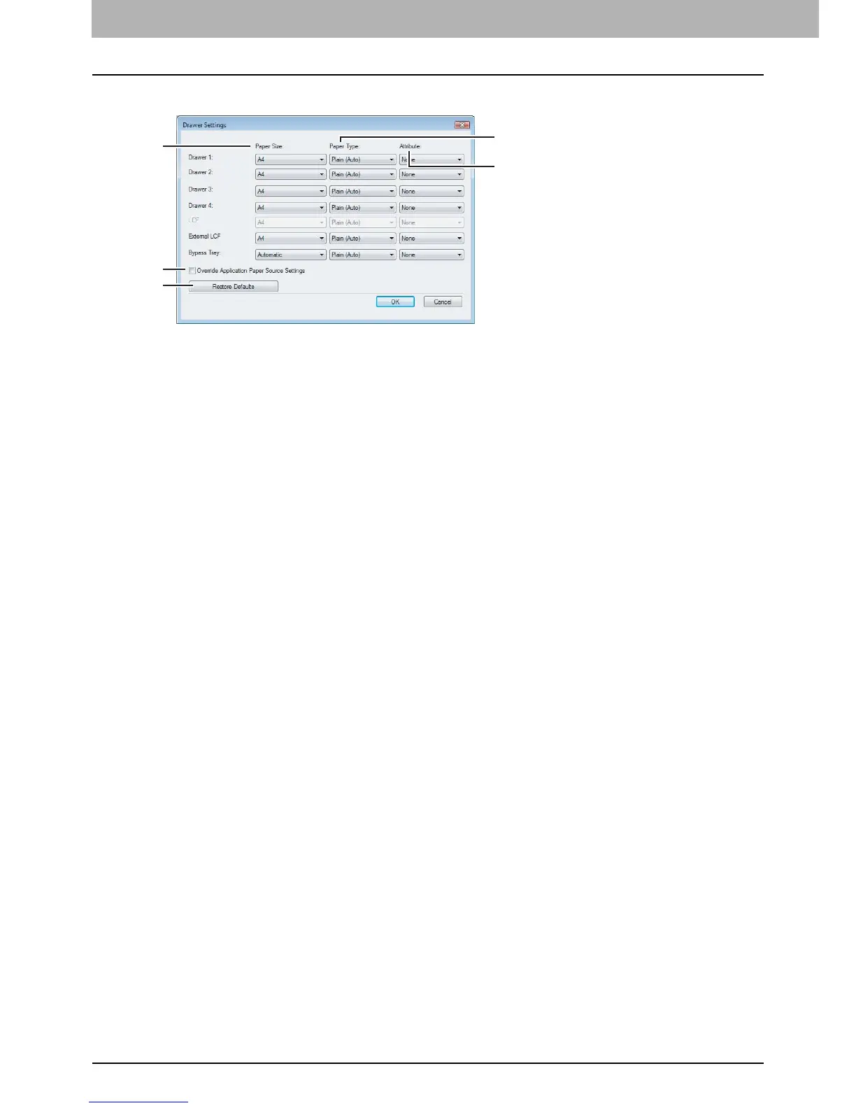 Click this to restore the settings displayed in the [Drawer Settings] dialog box to the original factory defaults.