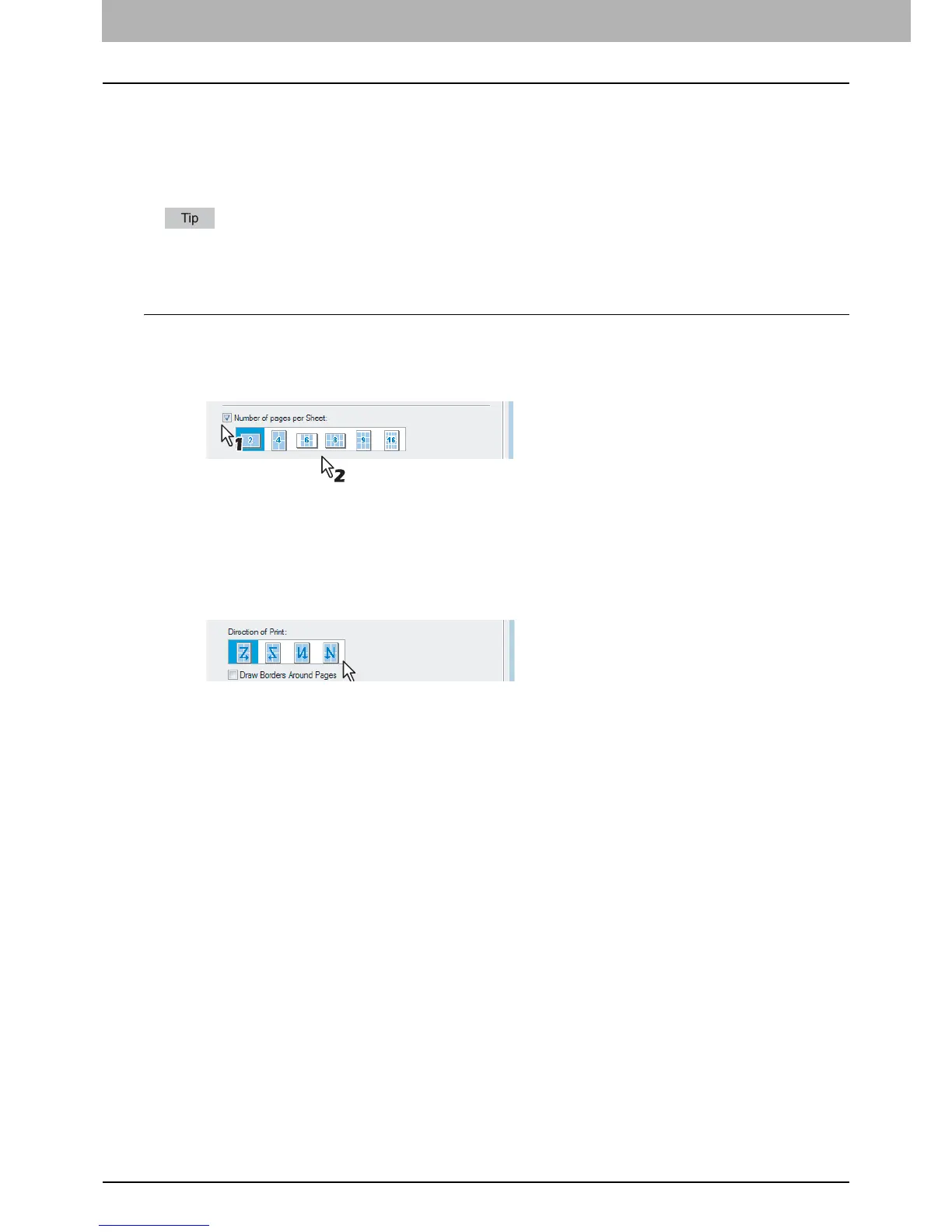 Select how the pages are arranged on one sheet in the [Direction of print] option.