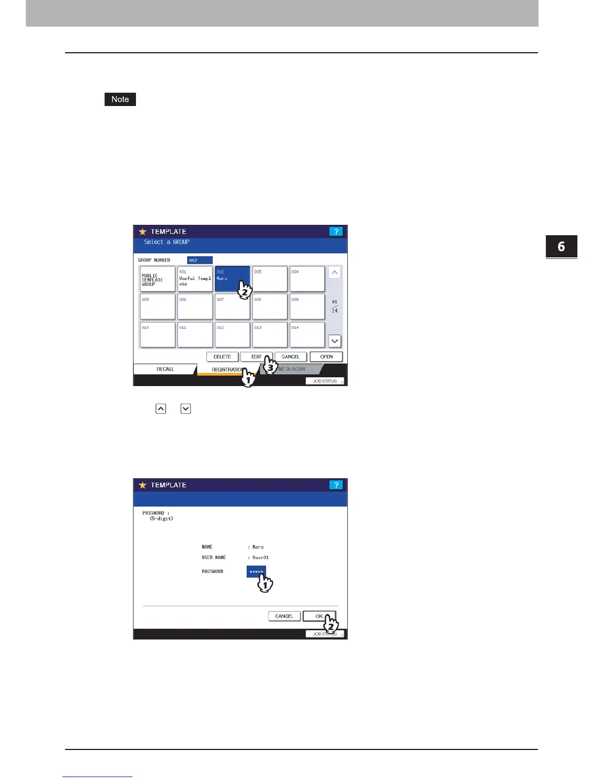 Key in the password for the selected group. (If no password is set, go to step 3.)