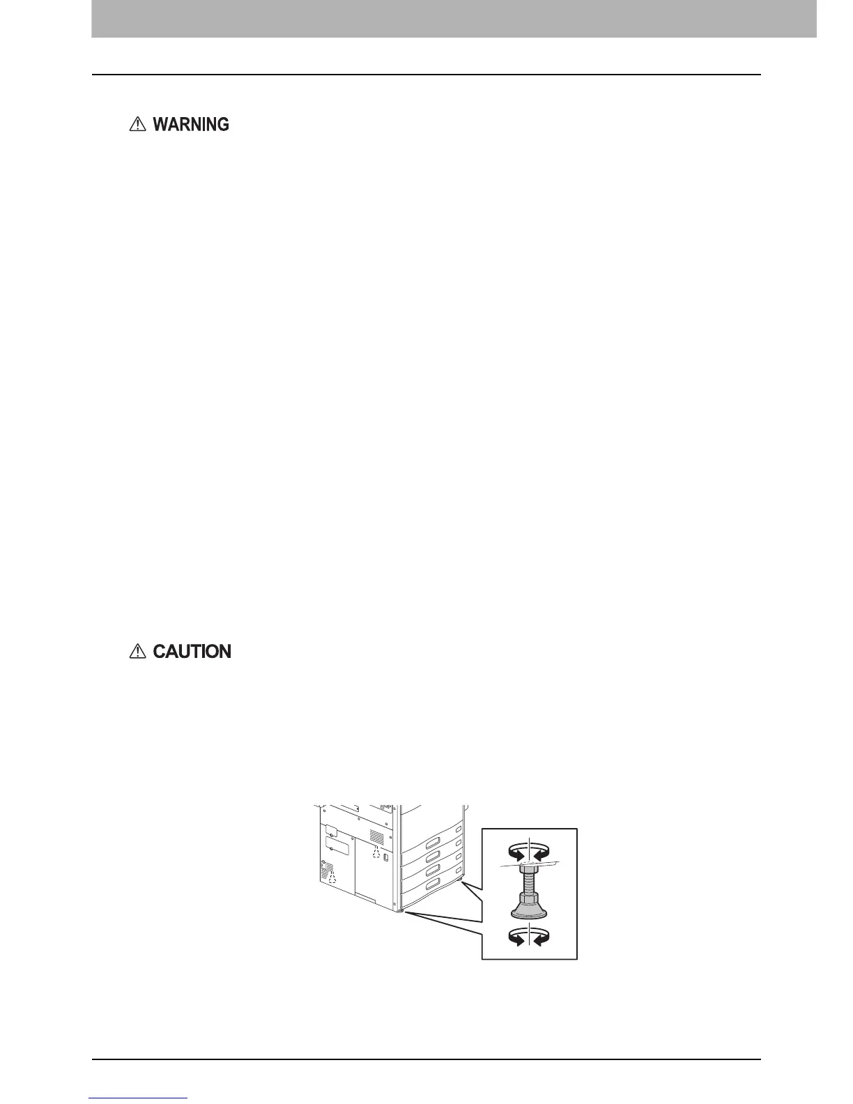 equipment, be sure to turn and lower the adjusters, and then fix them firmly on the floor.