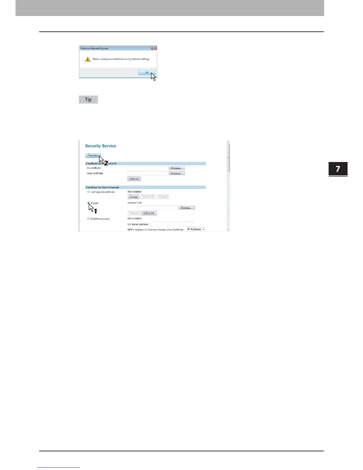 Select [Import] in [Certificate for Server Protocols], and then click [Previous] to close