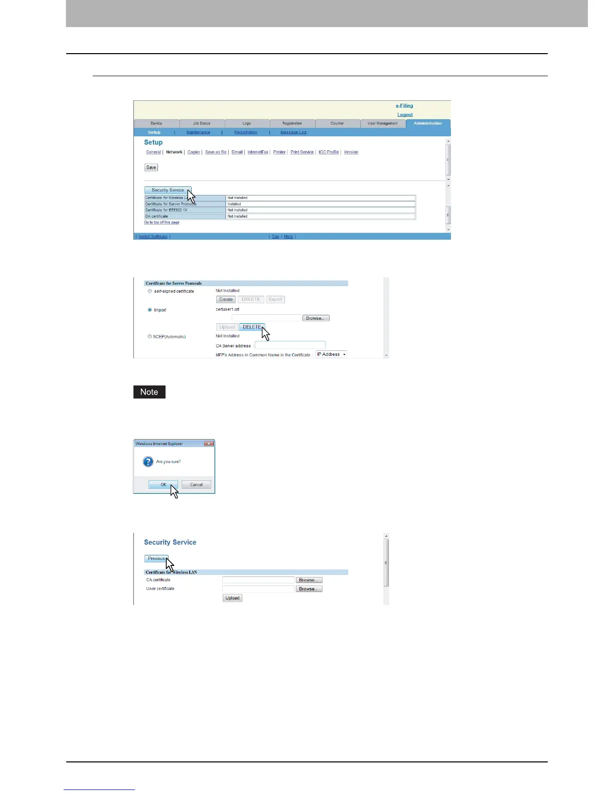 Click [DELETE] of [Import] in [Certificate for Server Protocols].