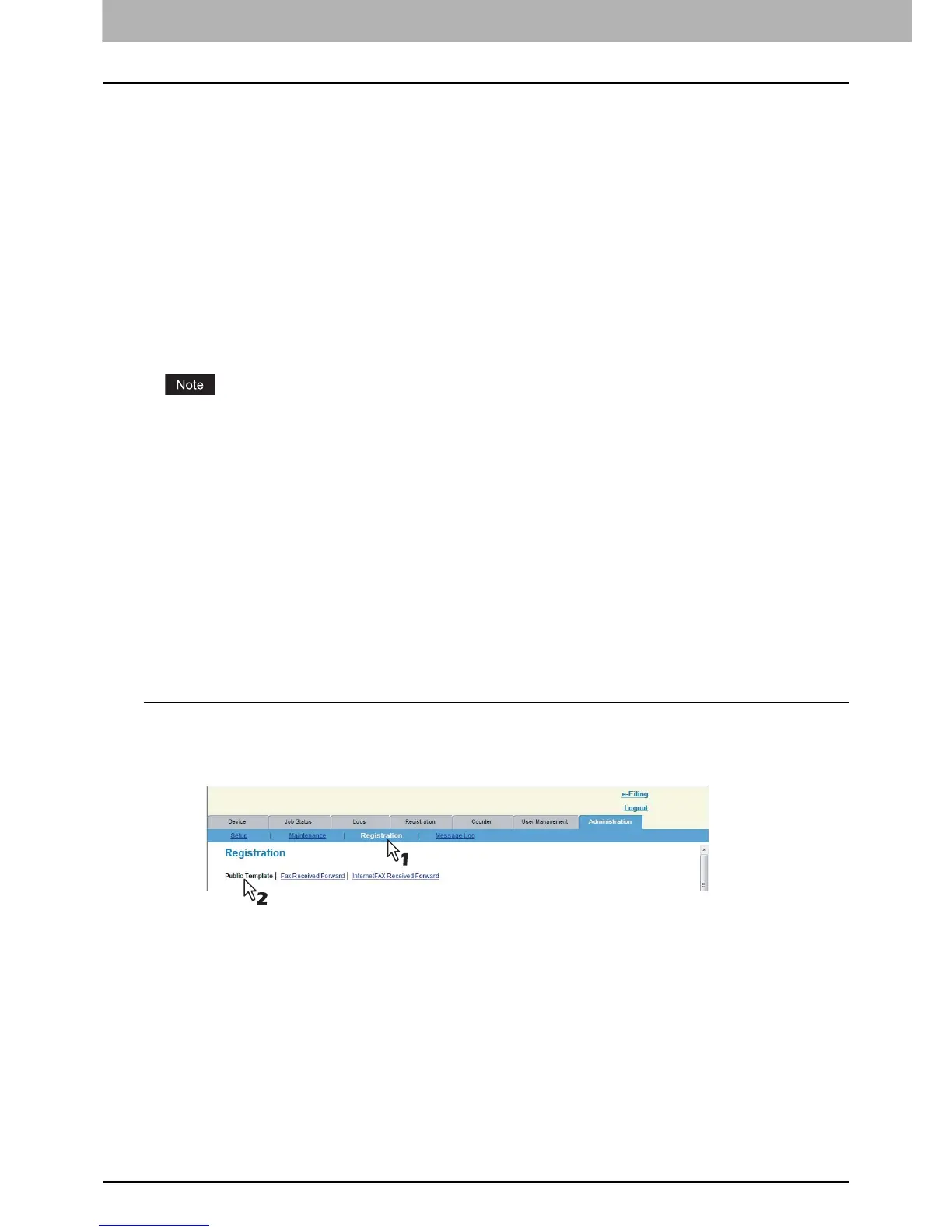 In the [Registration] menu in the COMMAND CENTER administrator mode, an administrator can register the public