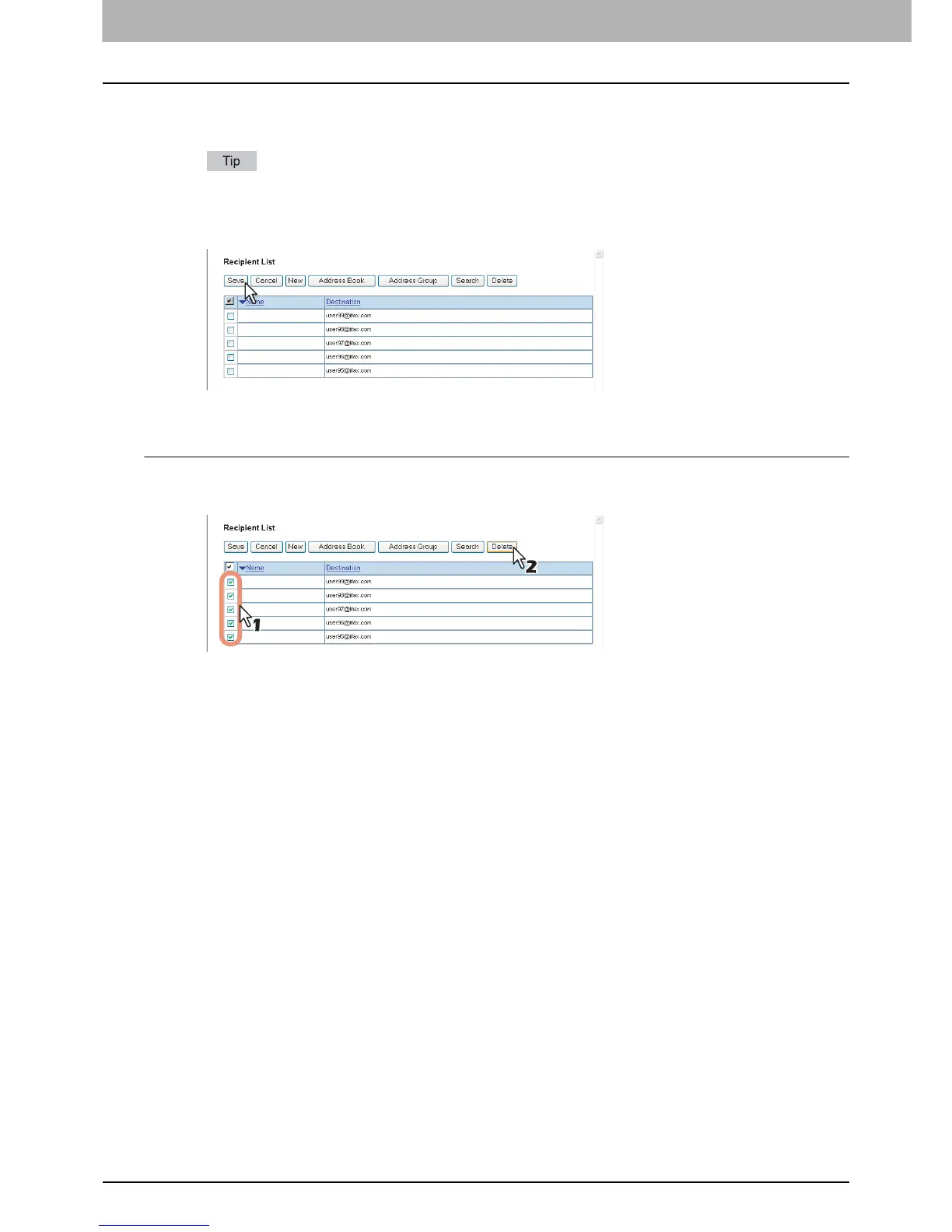 P.238 “Removing the contacts from the recipient list”