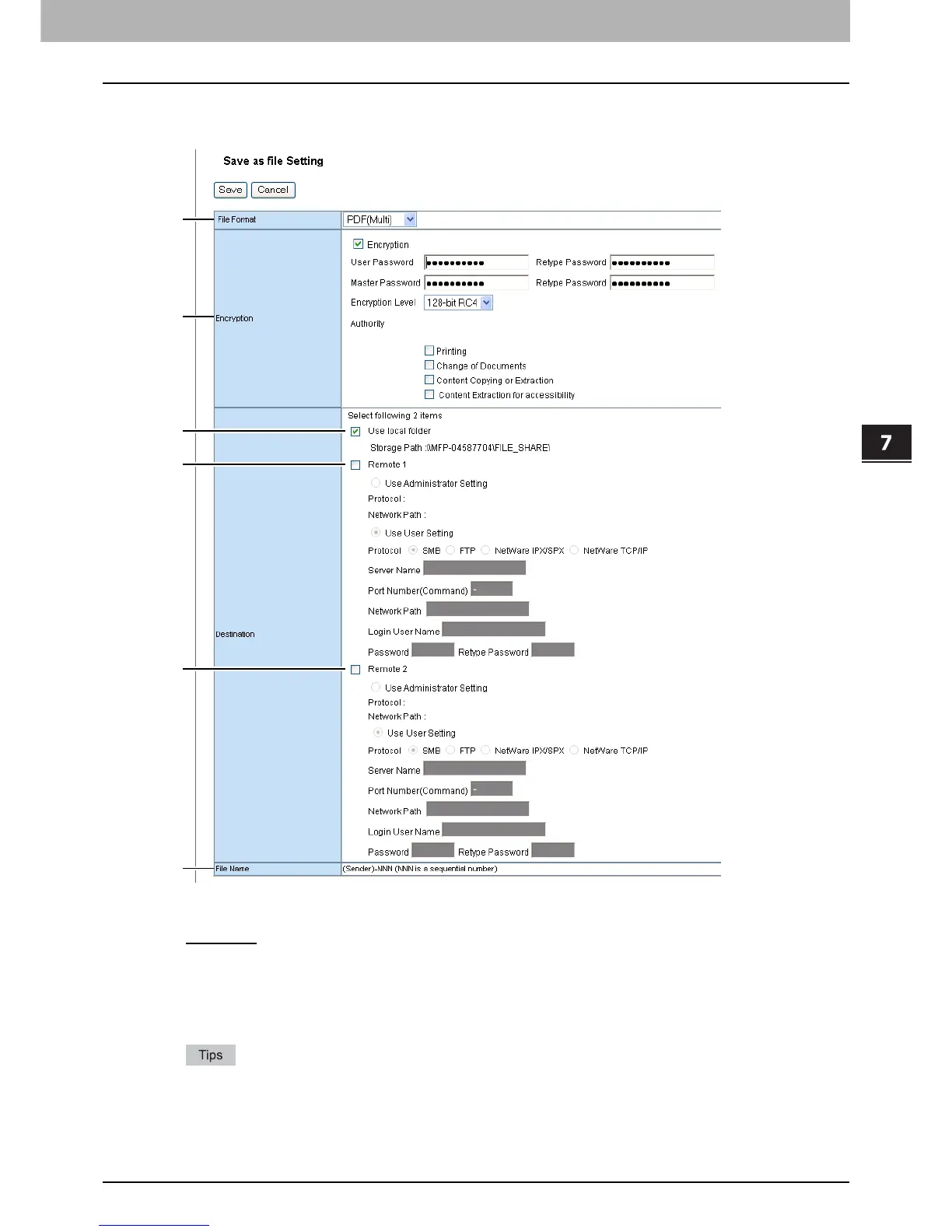 Save as file Setting (Fax/Internet Fax received forward)