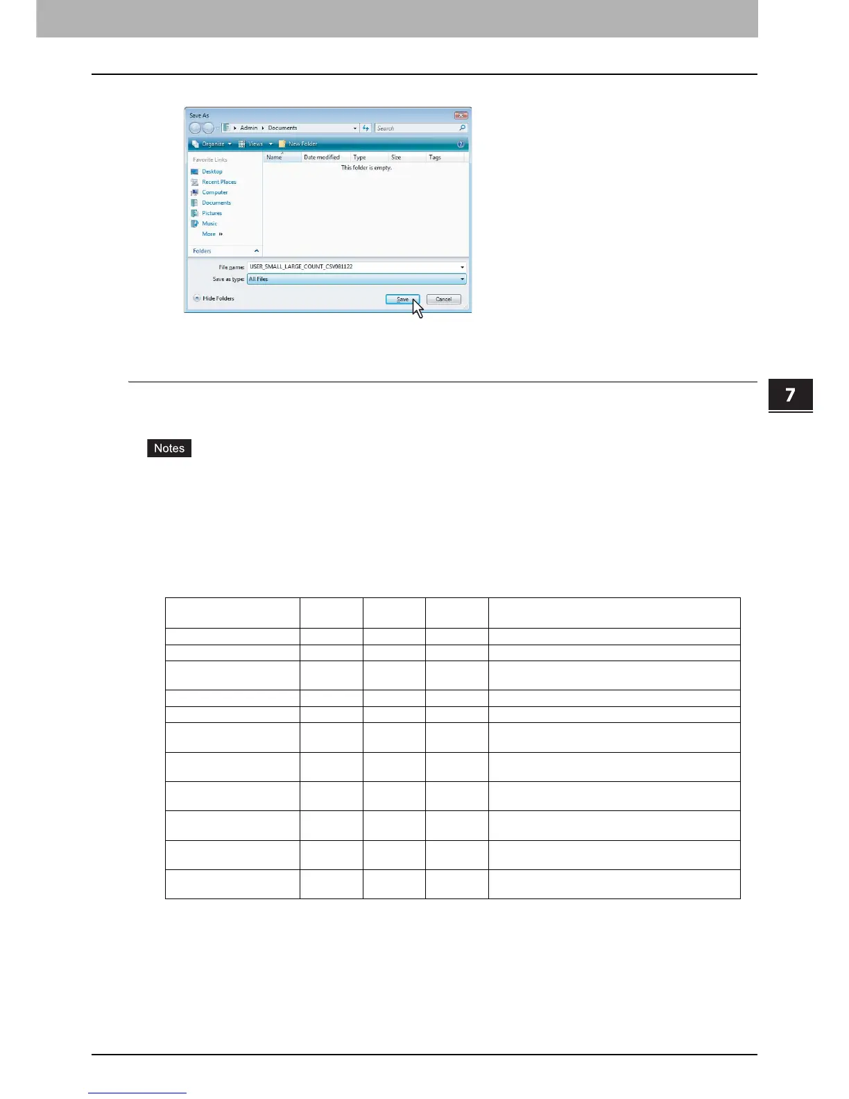 The CSV file that contains the user information data is saved in the selected location.