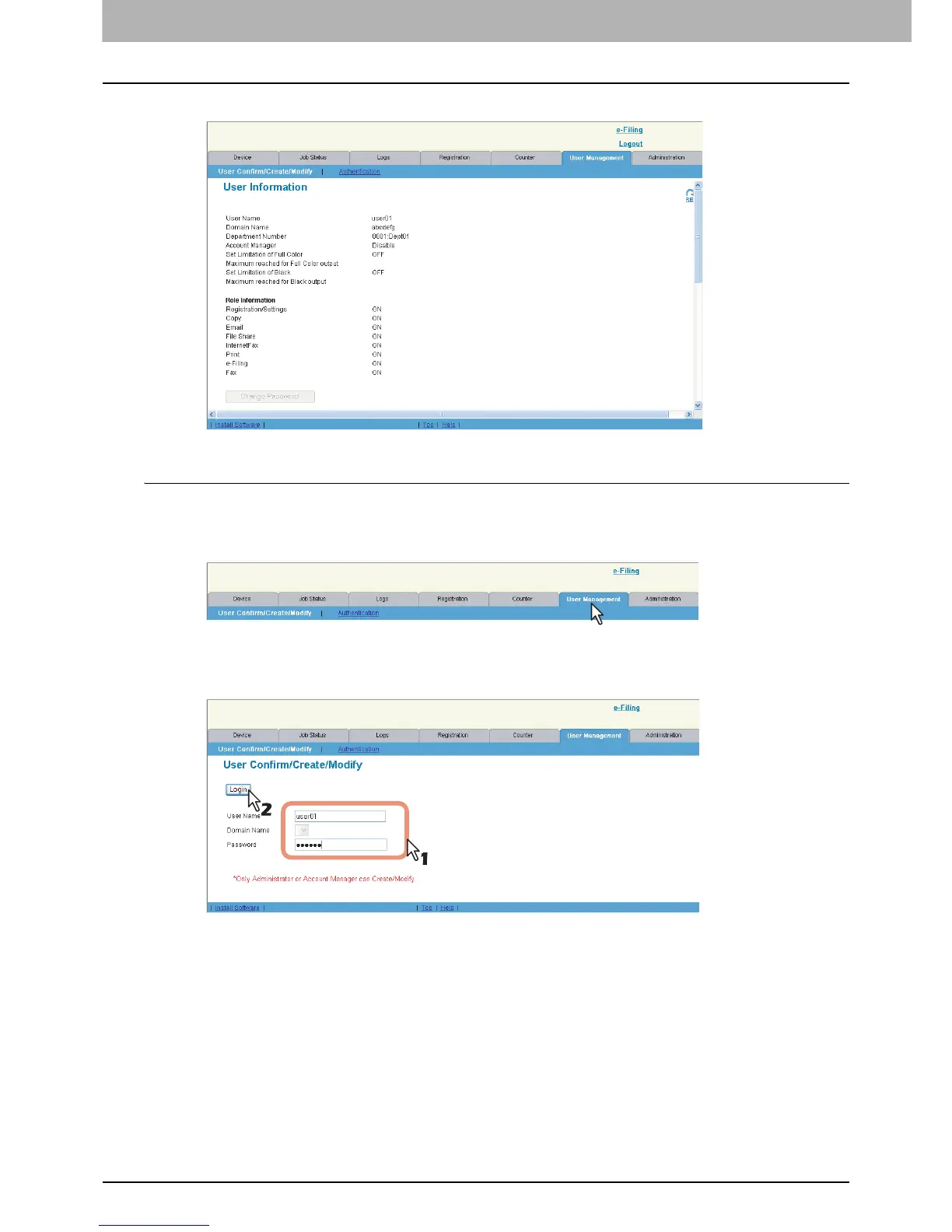 Changing a password by a user (Local MFP Authentication only)