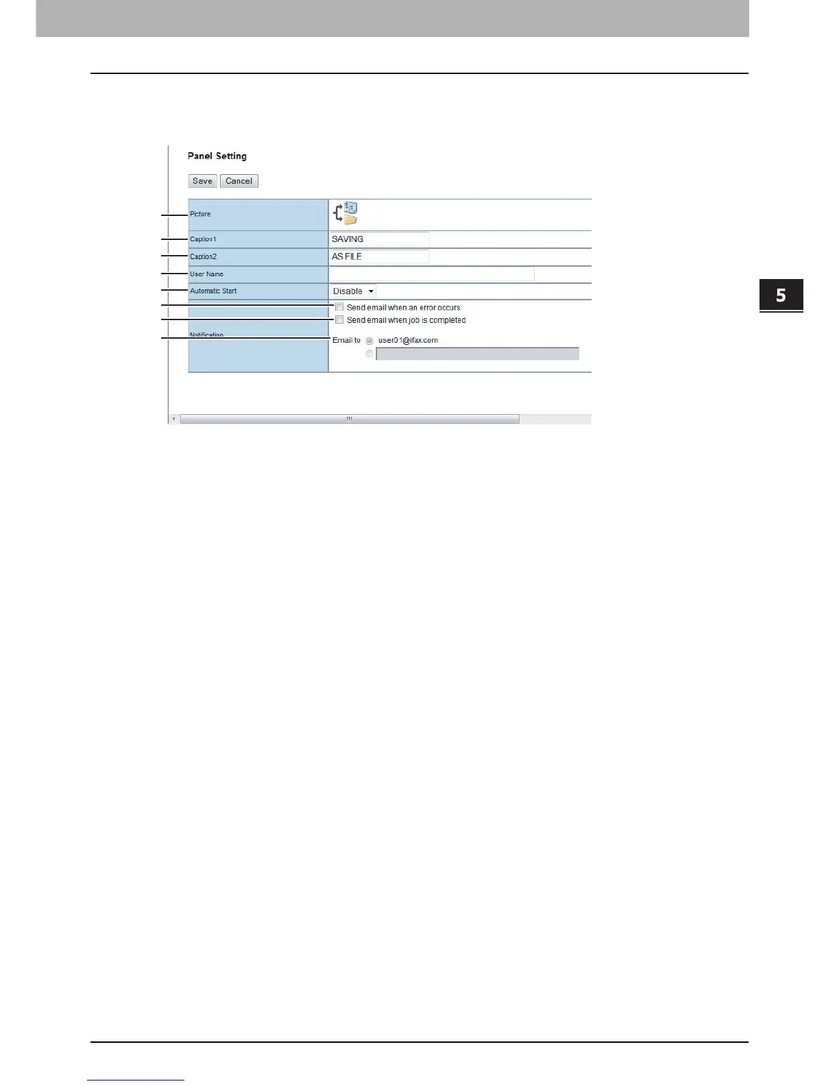 In the Panel Setting page, specify how the icon for the template is displayed in the touch panel, and the notification