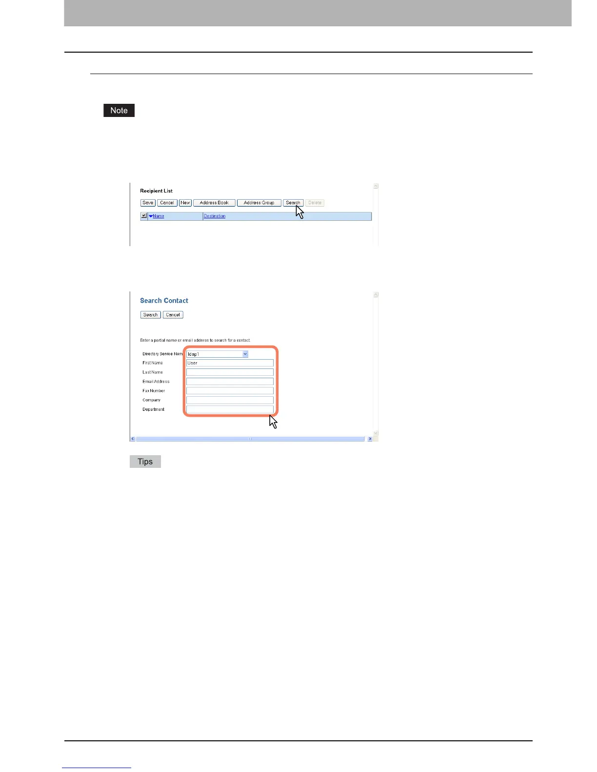 COMMAND CENTER will start searching for recipients in the LDAP server and the Search Address List page will